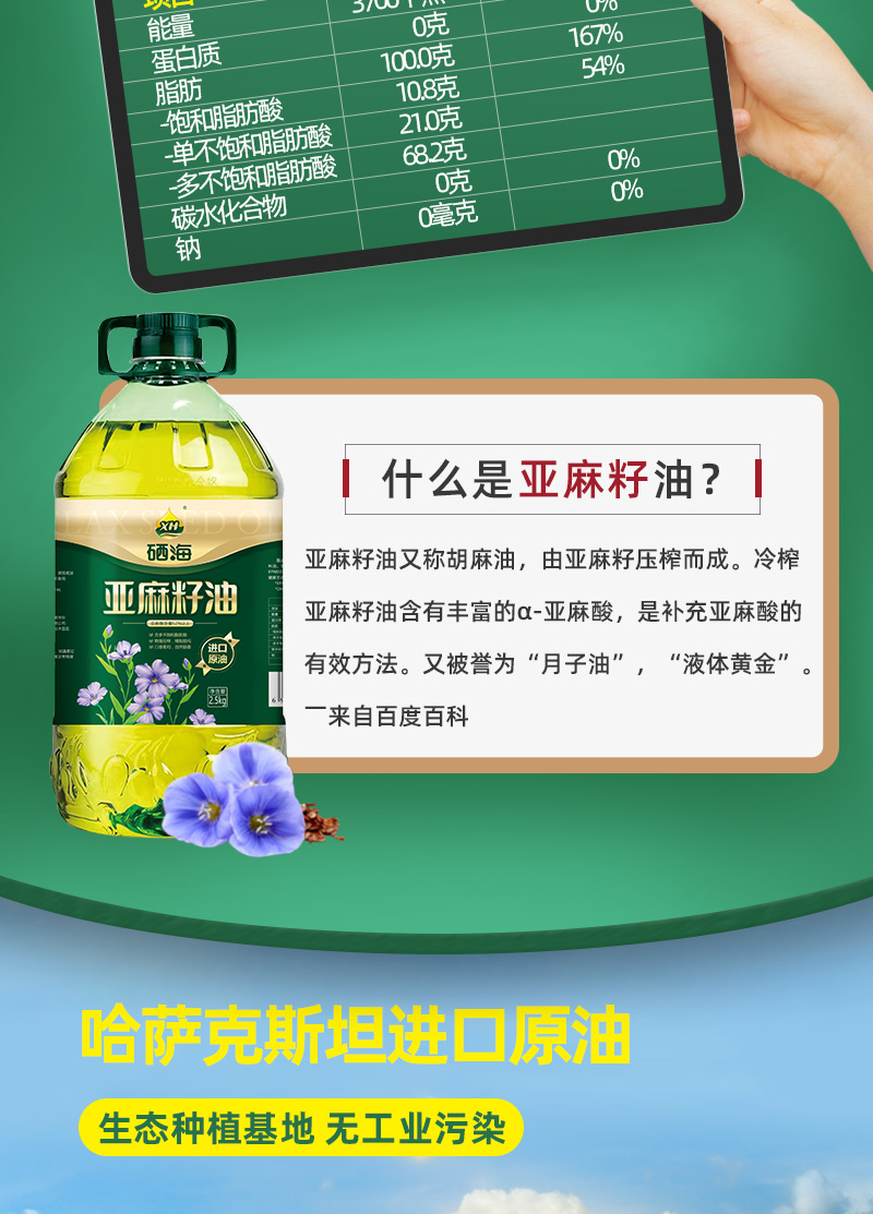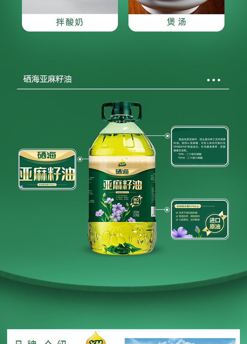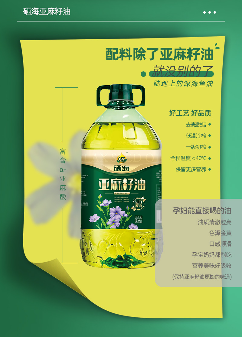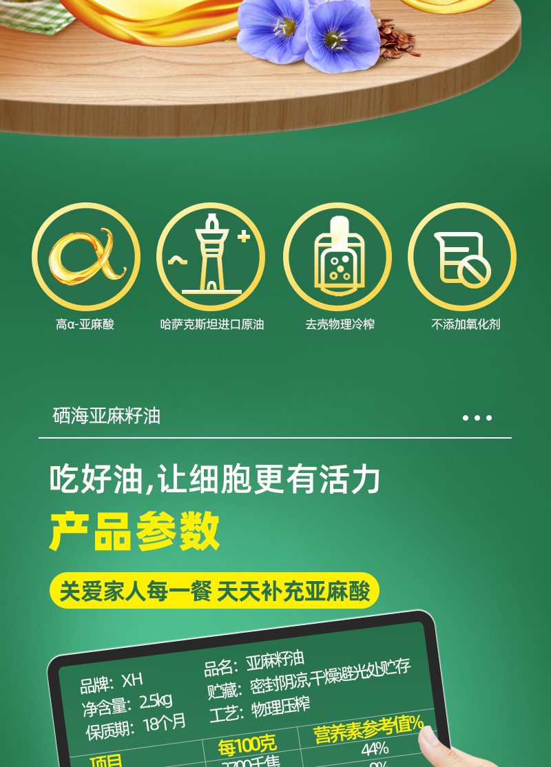 XH硒海冷榨亚麻籽油2.5kg(单位:桶) 亚麻籽油2.5kg