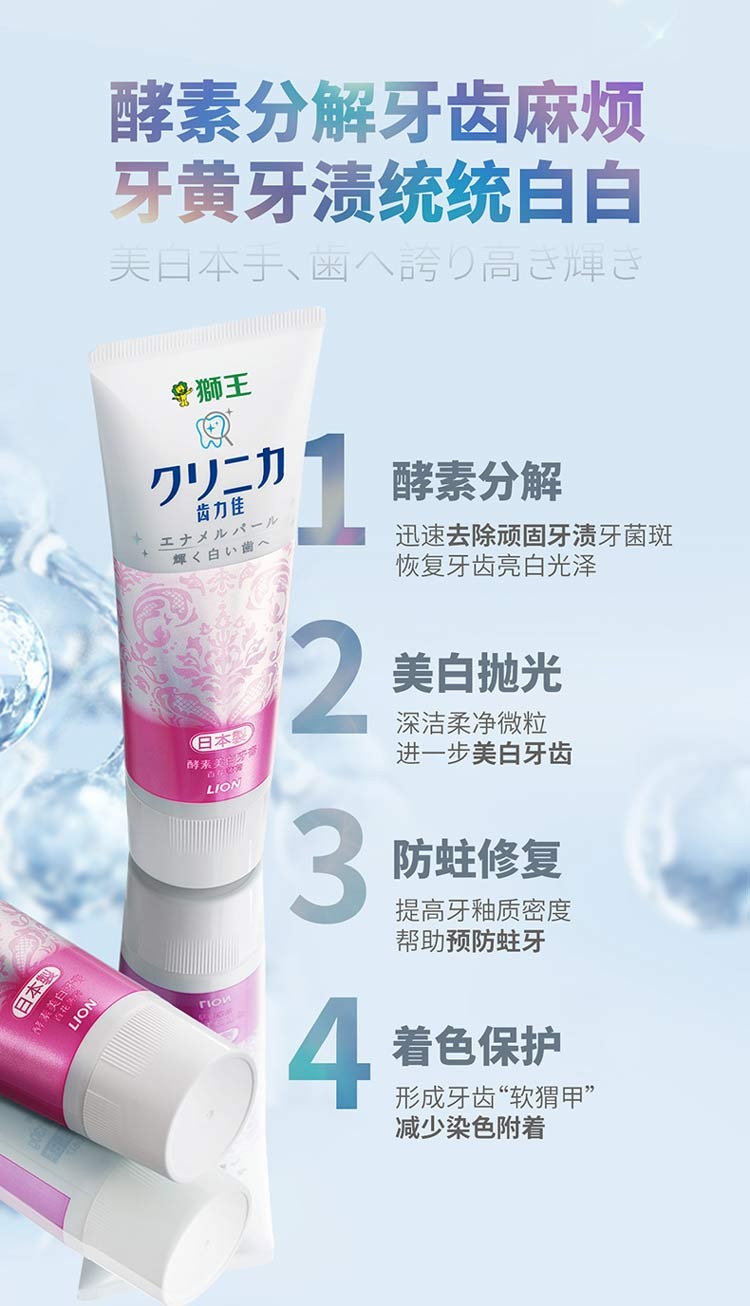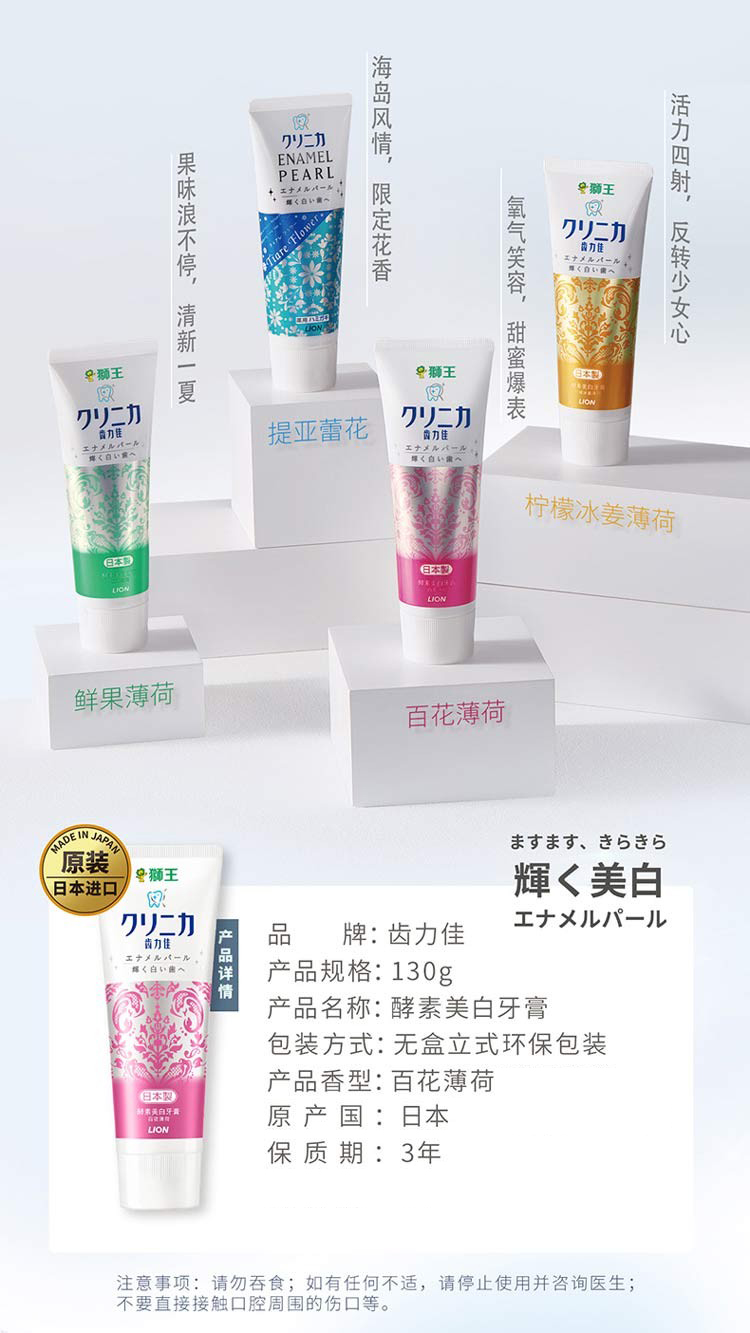 狮王齿力佳酵素美白牙膏(百花薄荷)130g*3(单位:组)
