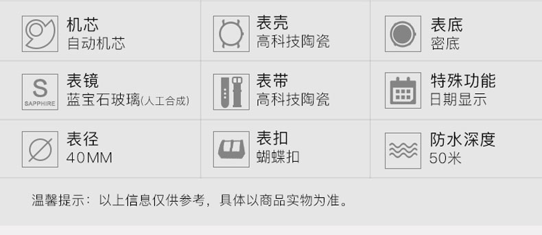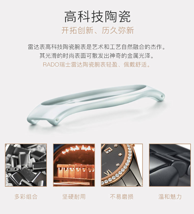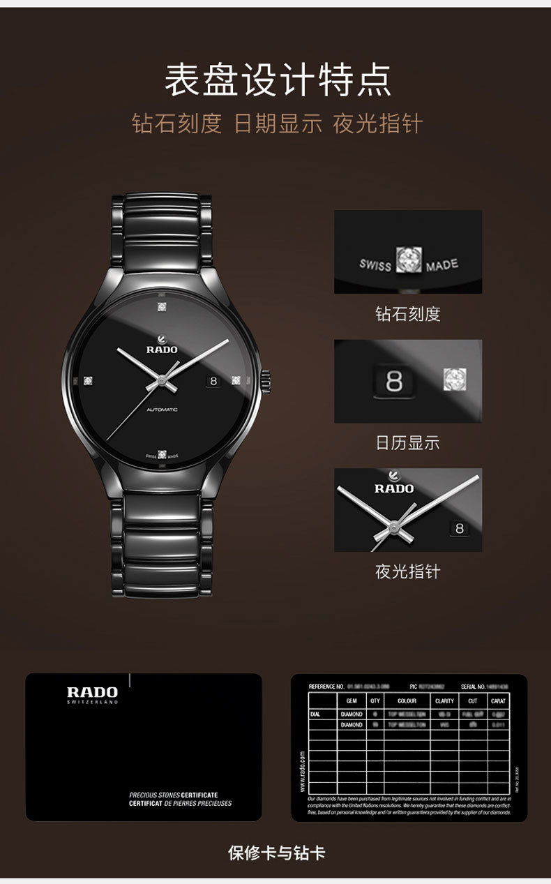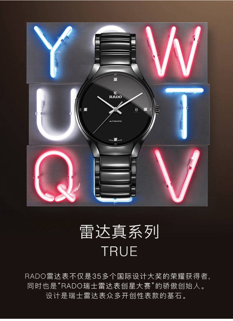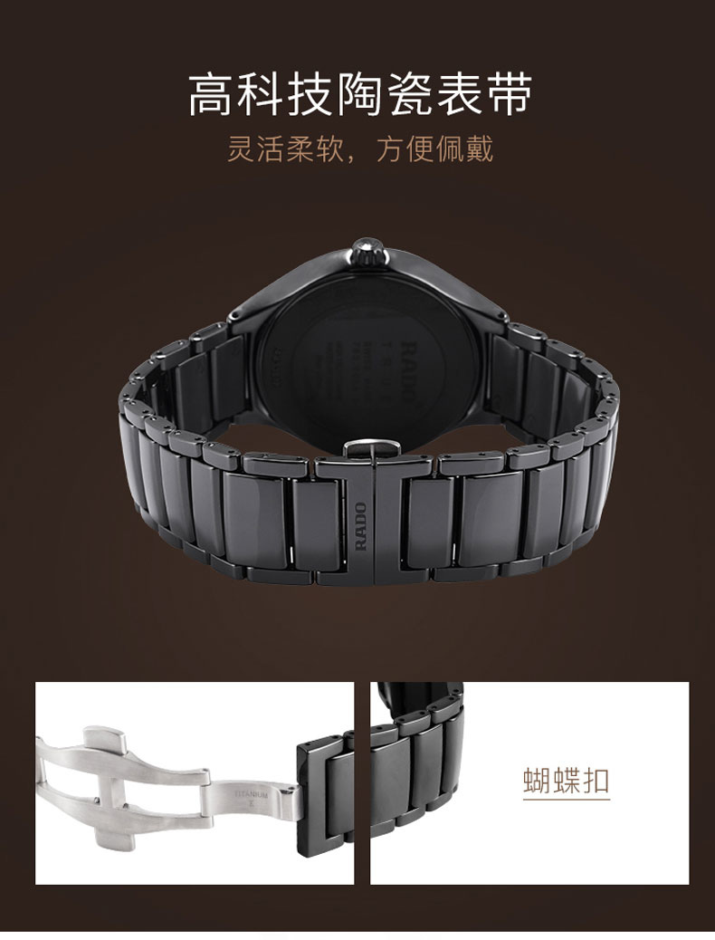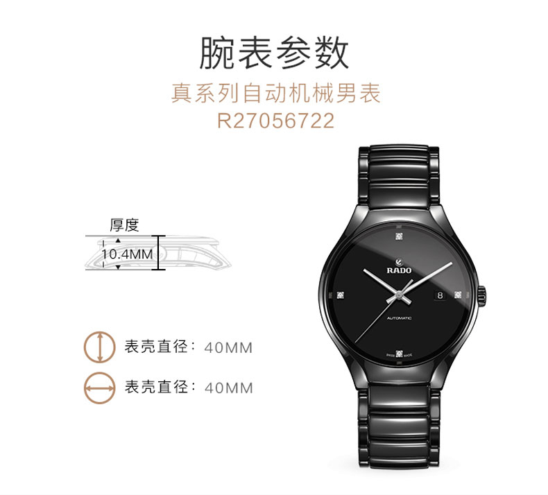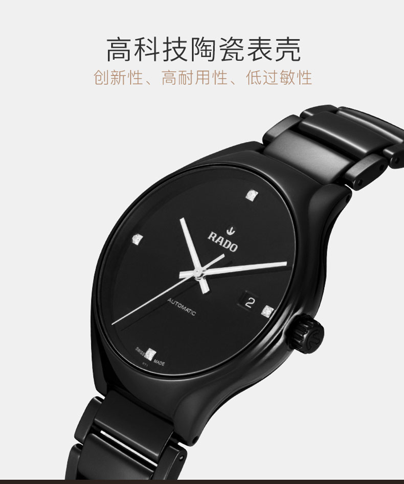 RADO雷达手表 真系列男士高科技陶瓷表带情侣机械钻表 R27056722 单位:块 黑色