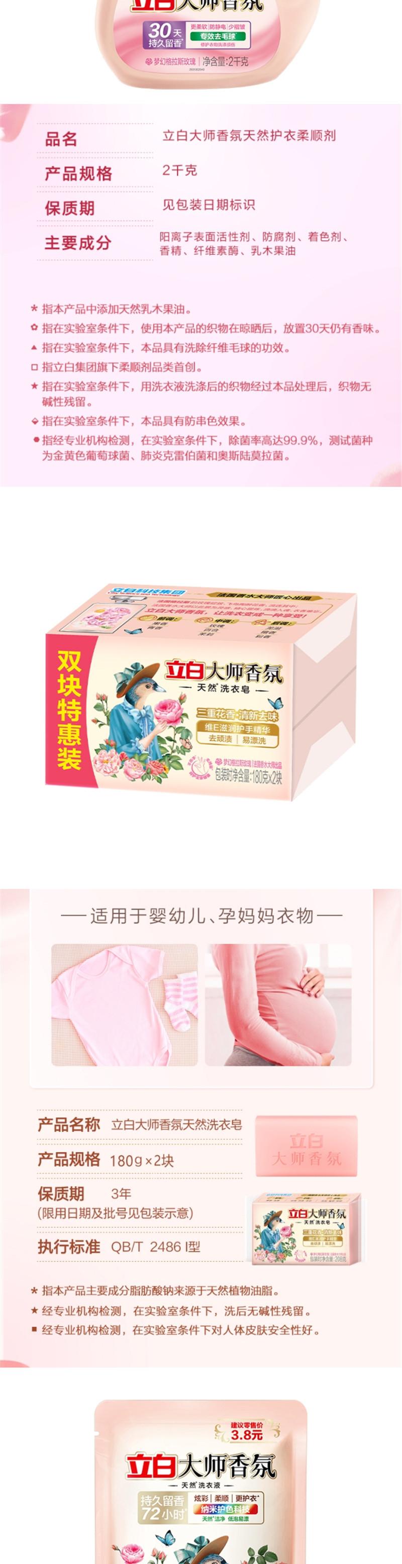 立白大师香氛系列组合(大师香氛柔顺剂2kg*1瓶+大师香氛洗衣液2kg*1瓶+大师香氛天然洗衣皂180g*2块*3包+大师香氛洗衣液100g*8袋+除菌祛味内衣洗衣液80g*3瓶)