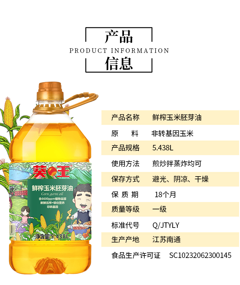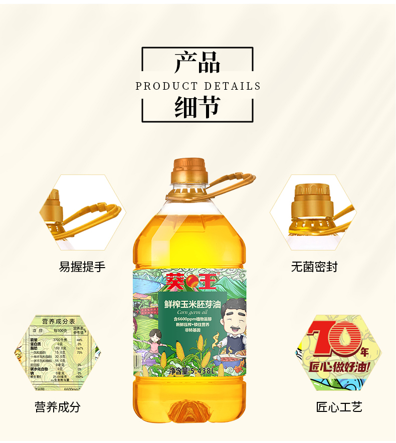 葵王鲜榨玉米胚芽油5.438L(单位:桶)
