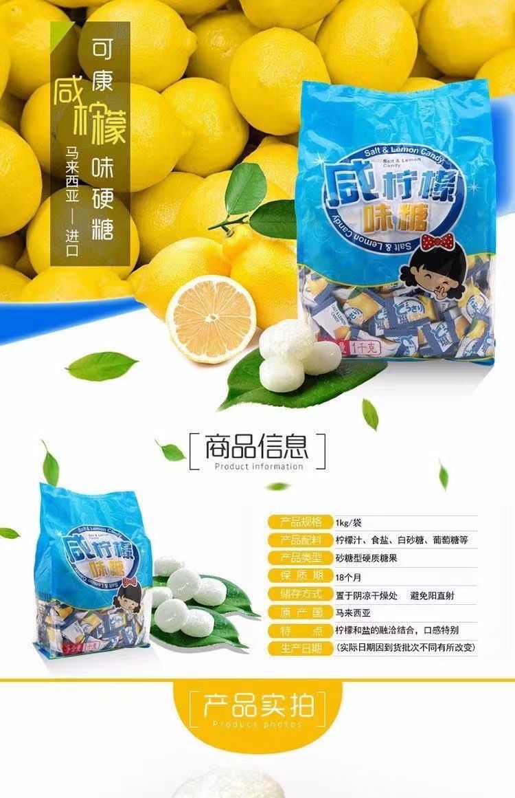 可康牌1千克天蓝色咸柠檬味糖(单位:袋) 天蓝色