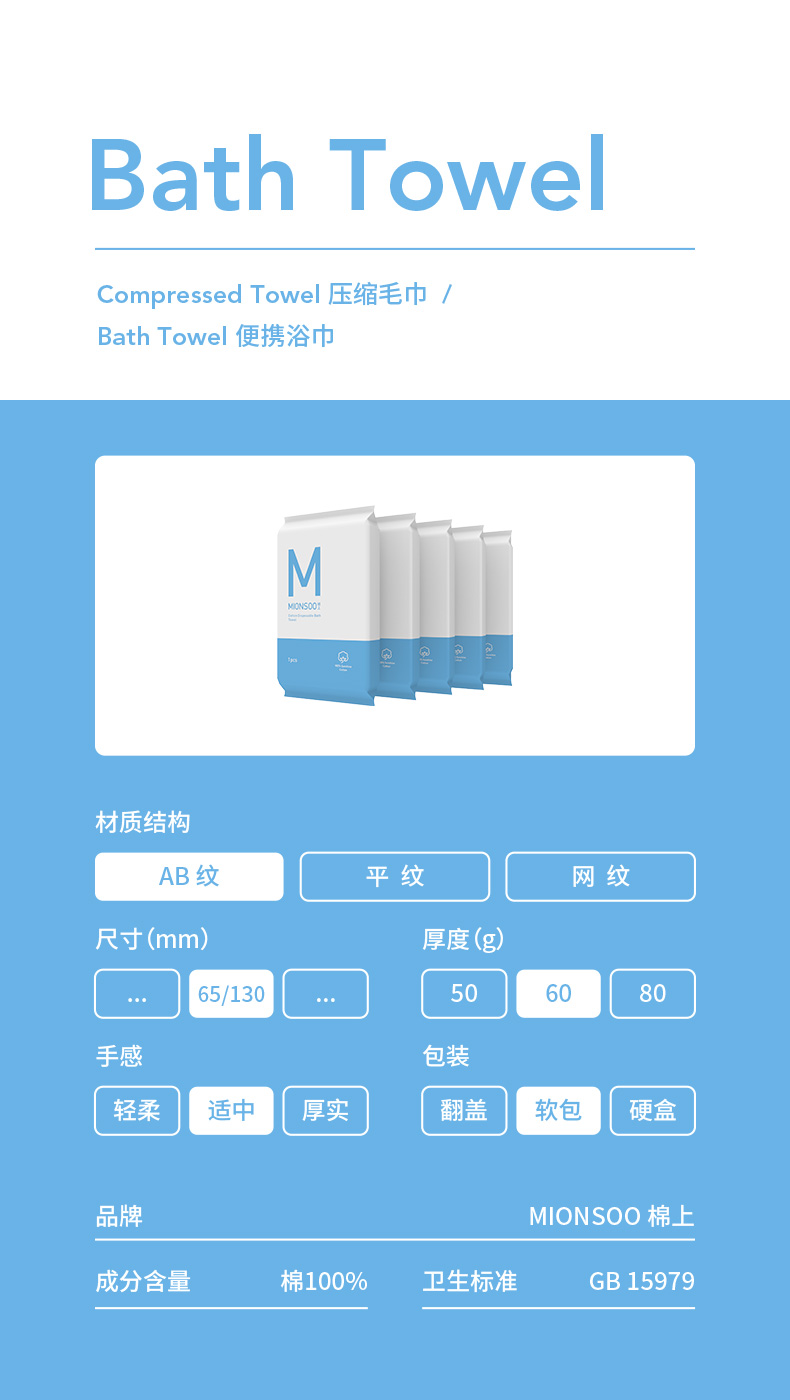 棉上便携浴巾3条全棉双面旅行一次性浴巾加厚速干出差户外大毛巾纯棉 (单位:条) 白色
