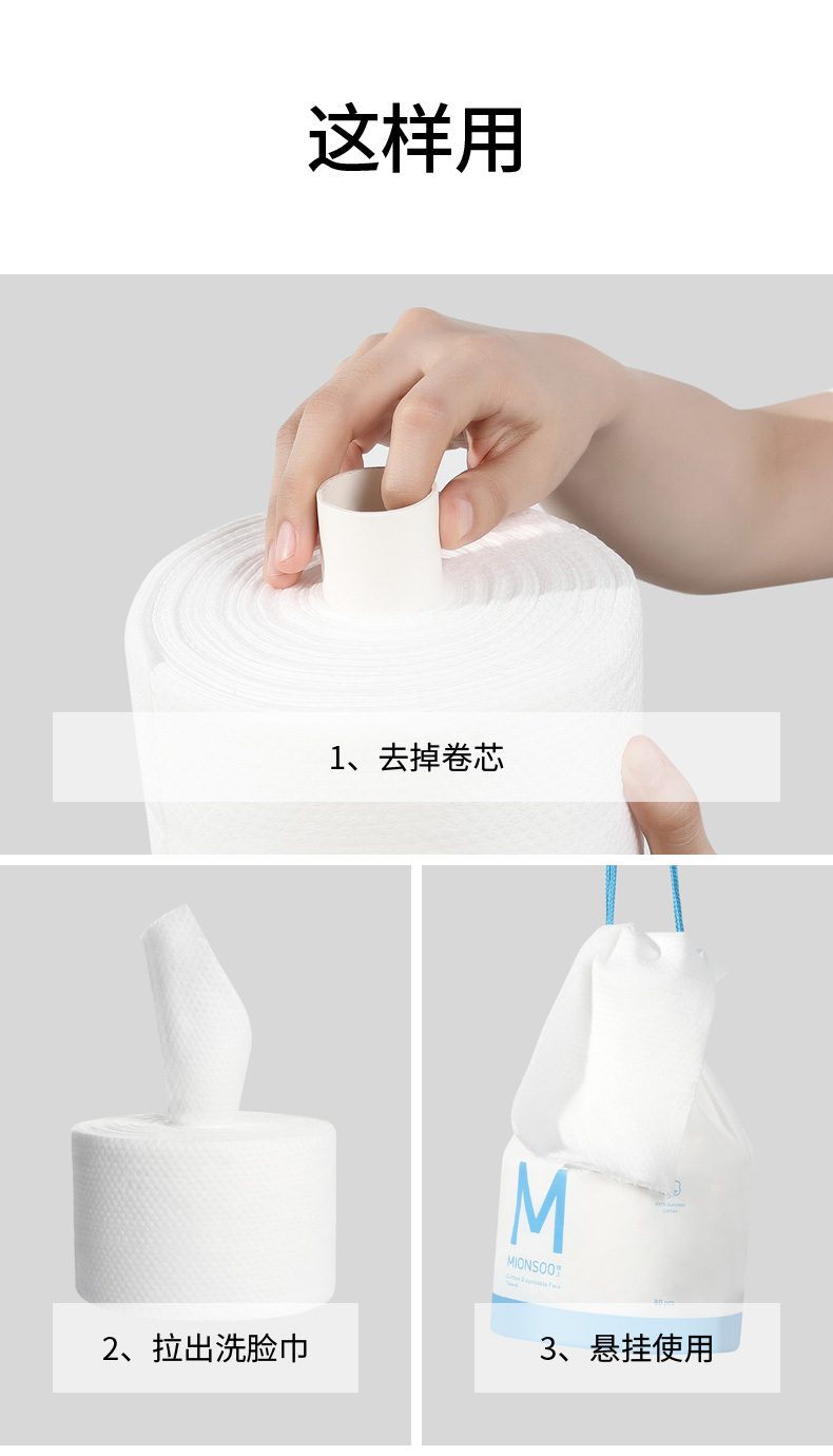 棉上卷筒式洗脸巾一次性纯棉女全棉面巾加厚棉柔巾80抽/卷*2卷(单位:卷) 白色
