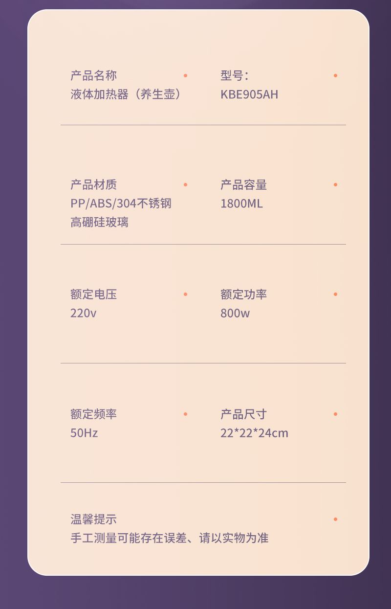 欧美达 养生壶 1.8L KBE905AH(个) 无色