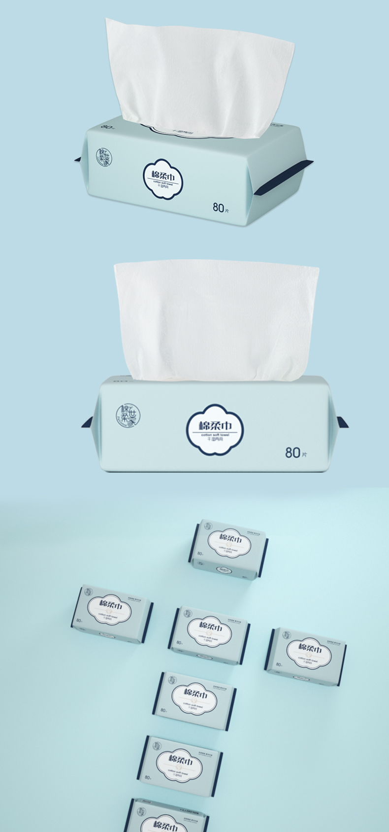 棉柔世家婴儿棉柔巾【80抽*6包/提】一次性洗脸巾柔纸巾洁面巾干湿擦脸巾 灰绿色