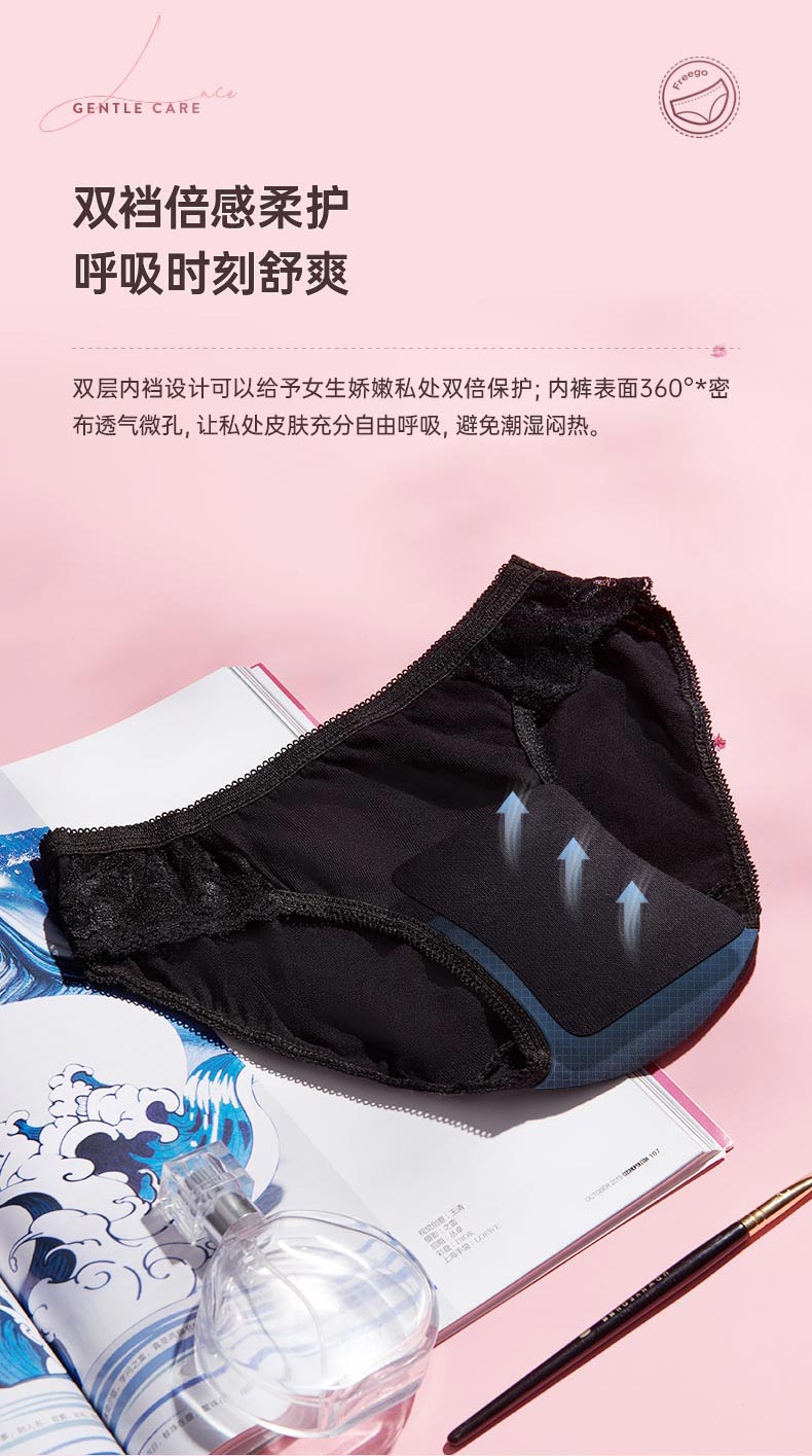 Freego女士蕾丝款一次性内裤-黑色 黑色*10包 M