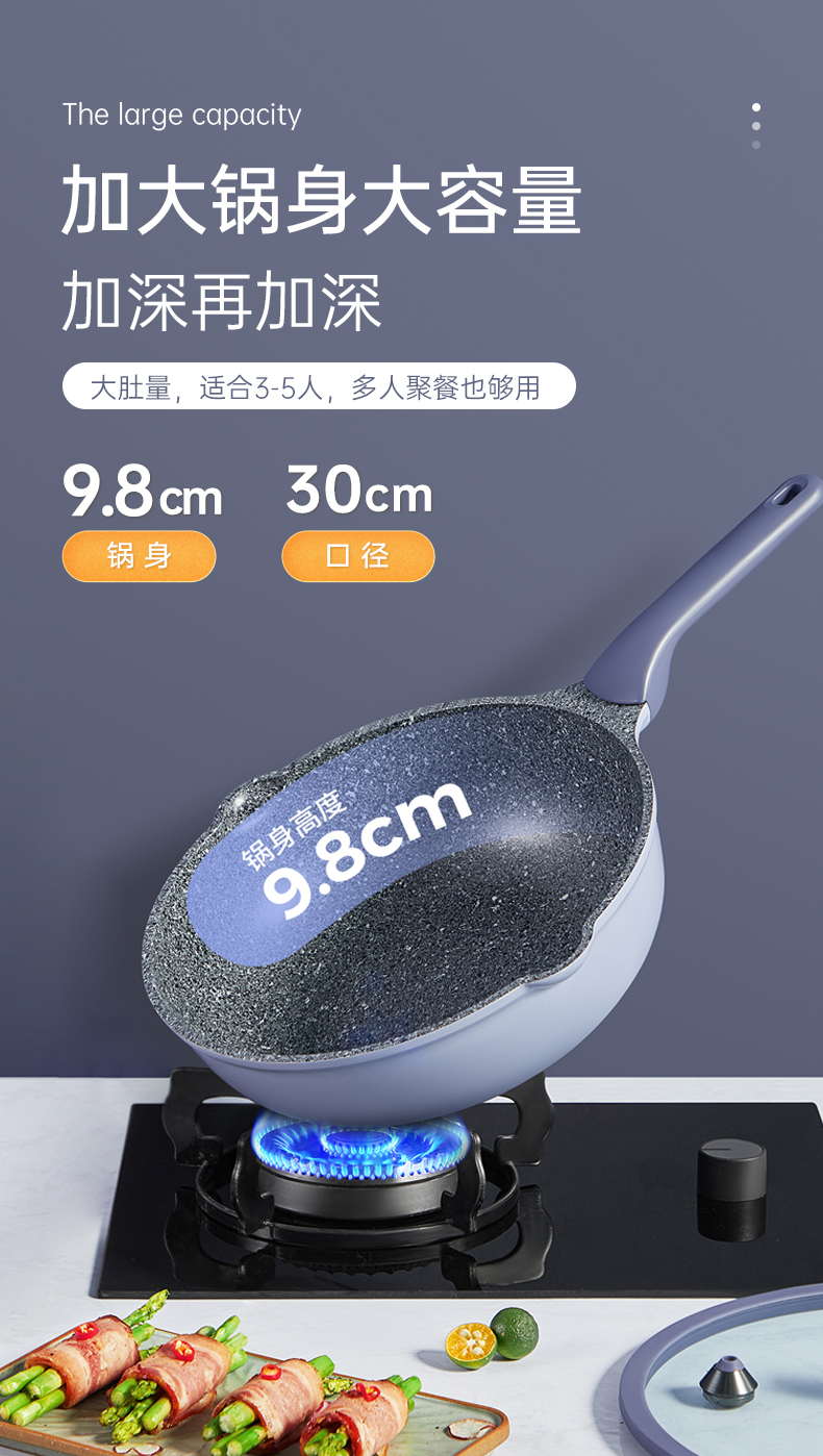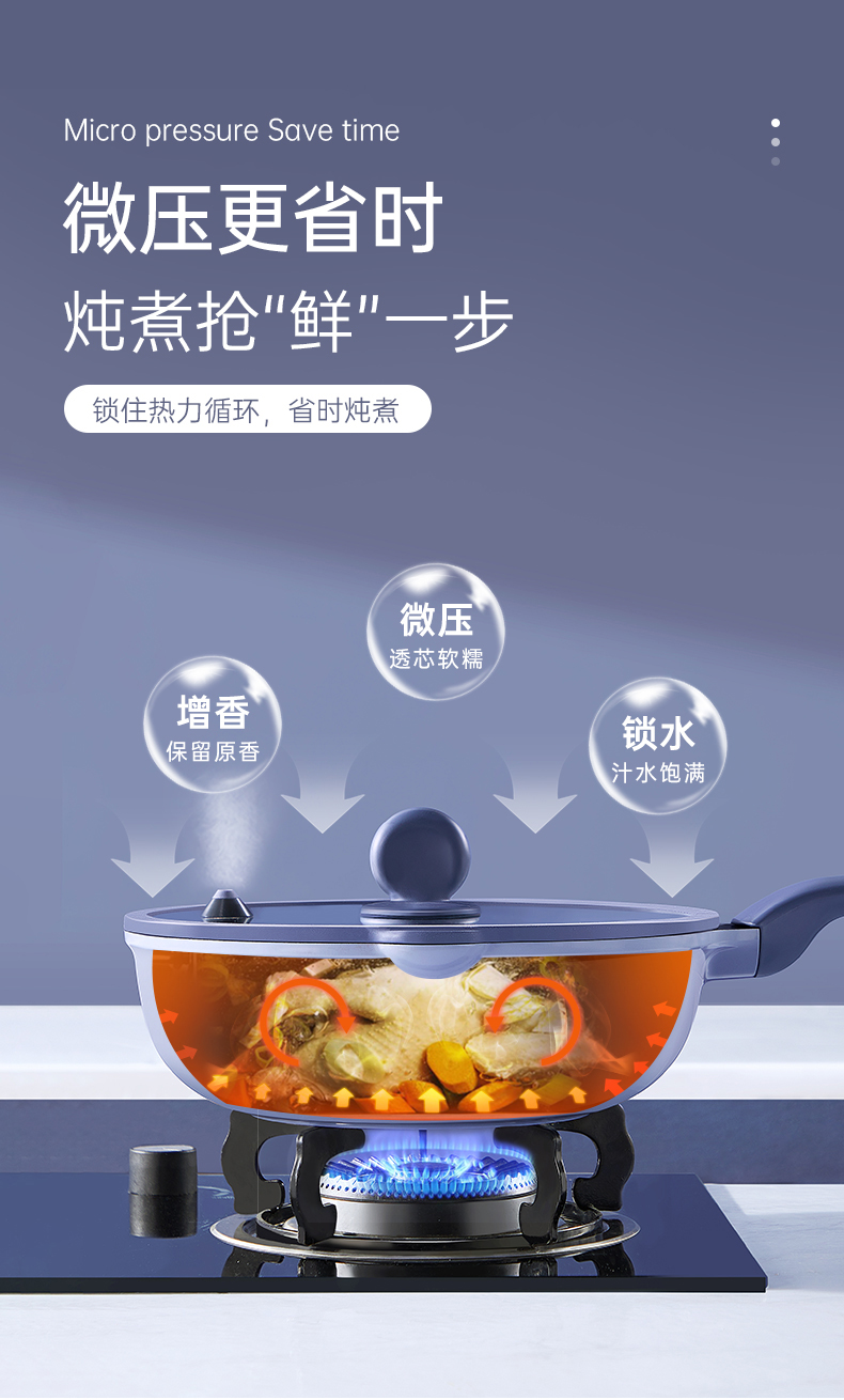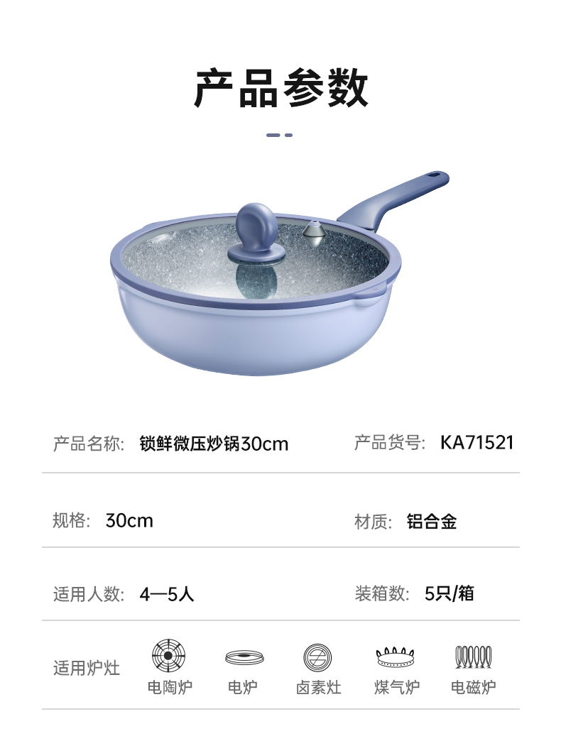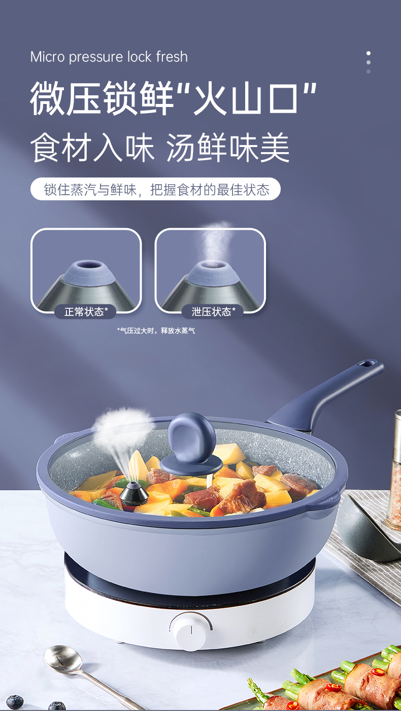 炊大皇锁鲜微压炒锅32cmKA71538(带盖) 蓝色