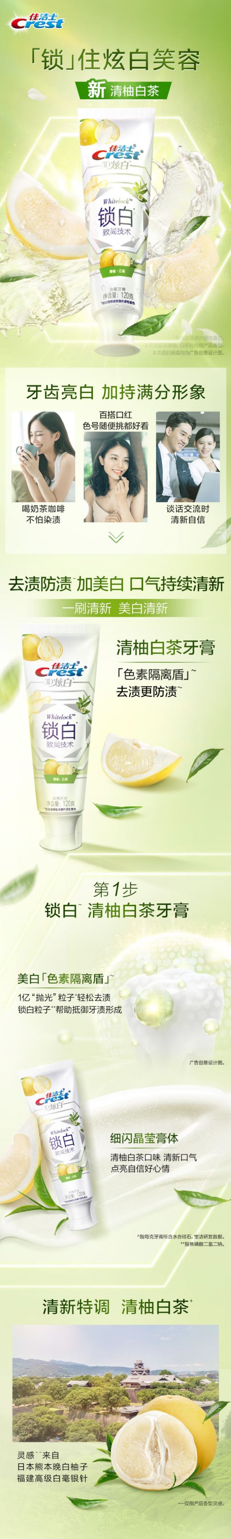 佳洁士双色锁白牙膏(清柚白茶)120g(单位:支) 混色