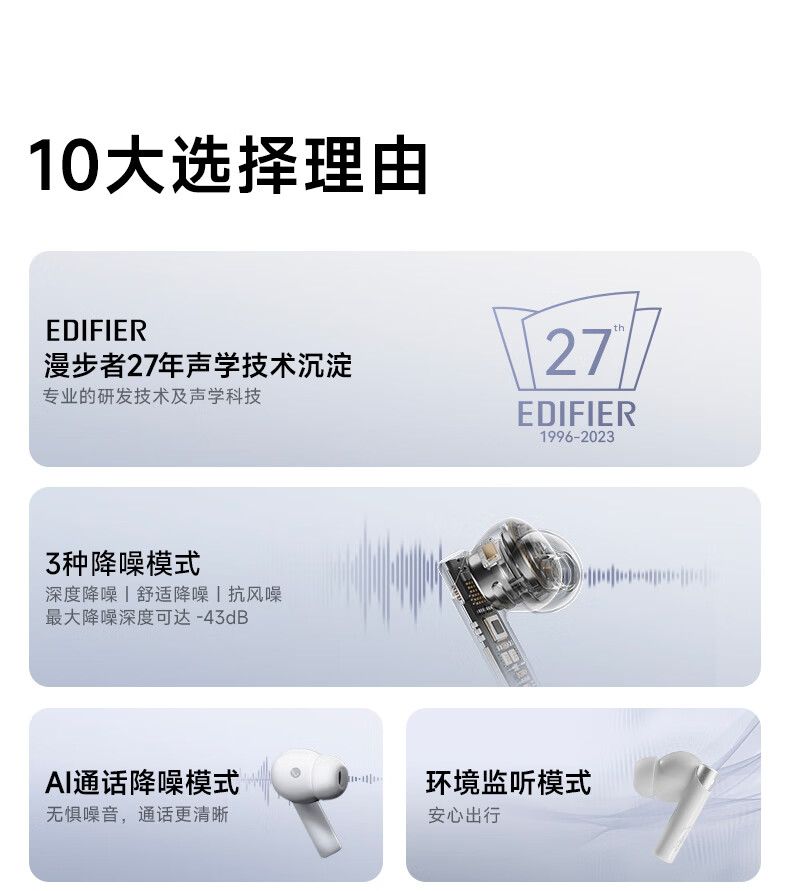 漫步者Zero ProTWS蓝牙耳机白色(单位:个) 钢琴白