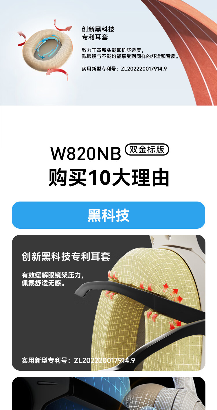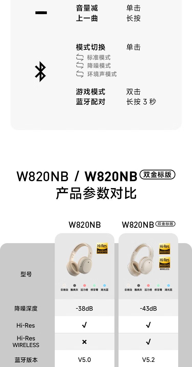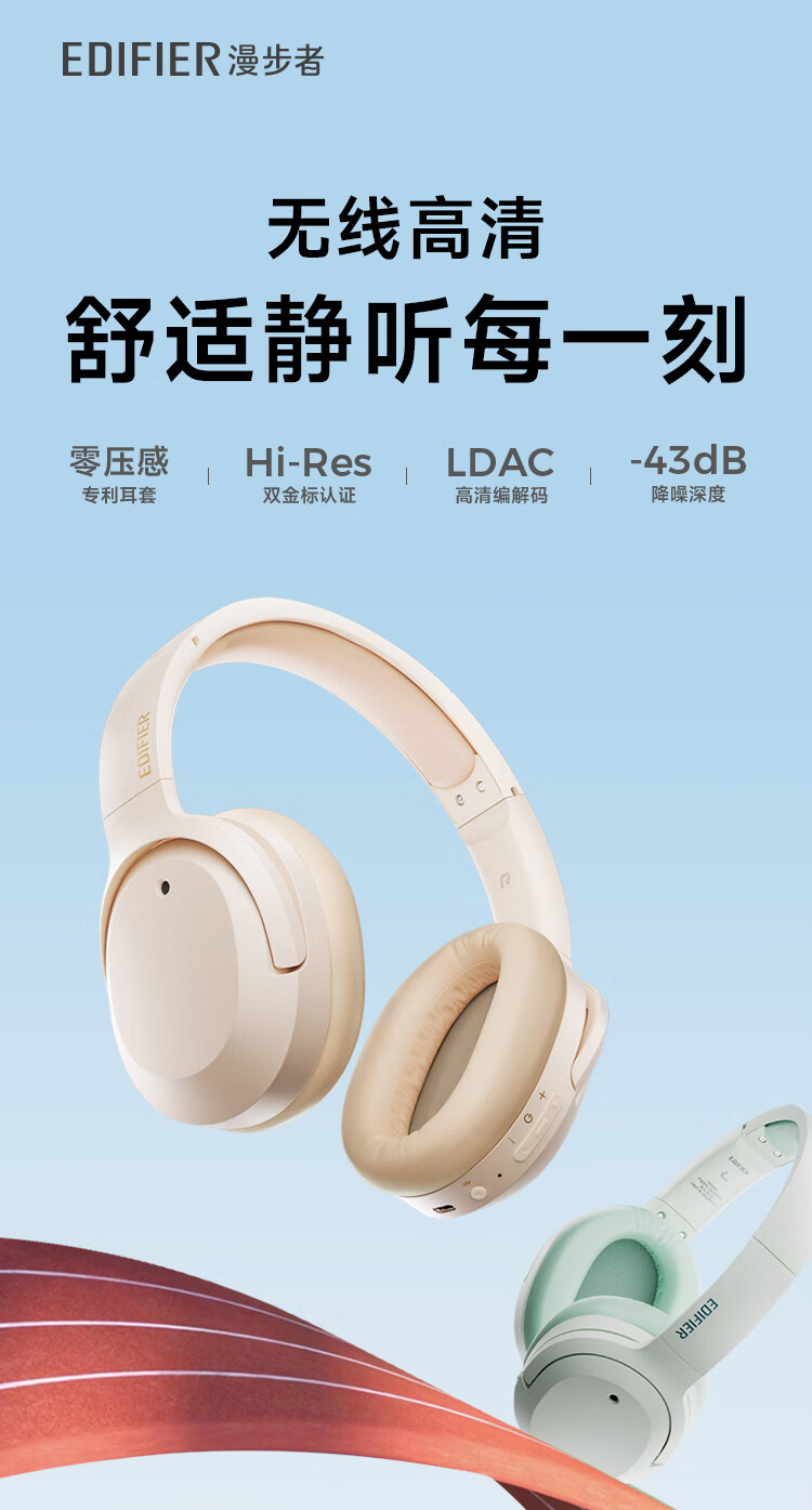 漫步者W820NB双金标头戴式耳麦白色(单位:个) 钢琴白