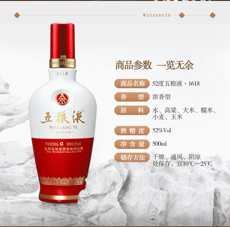 五粮液·1618 52度 单瓶500ml 红色