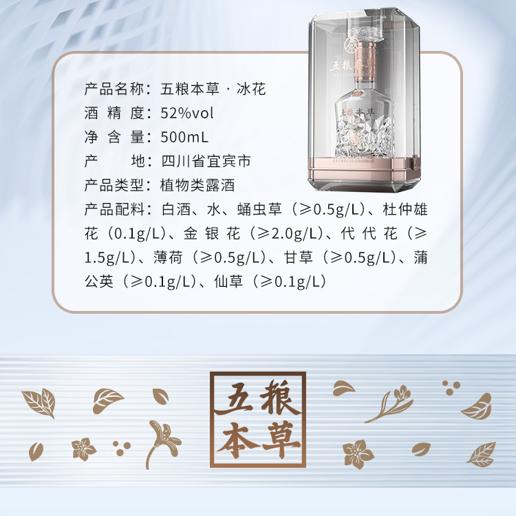 五粮液52五粮本草冰花 500ml*1瓶 白色