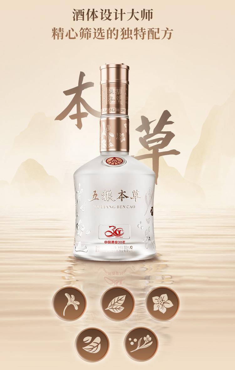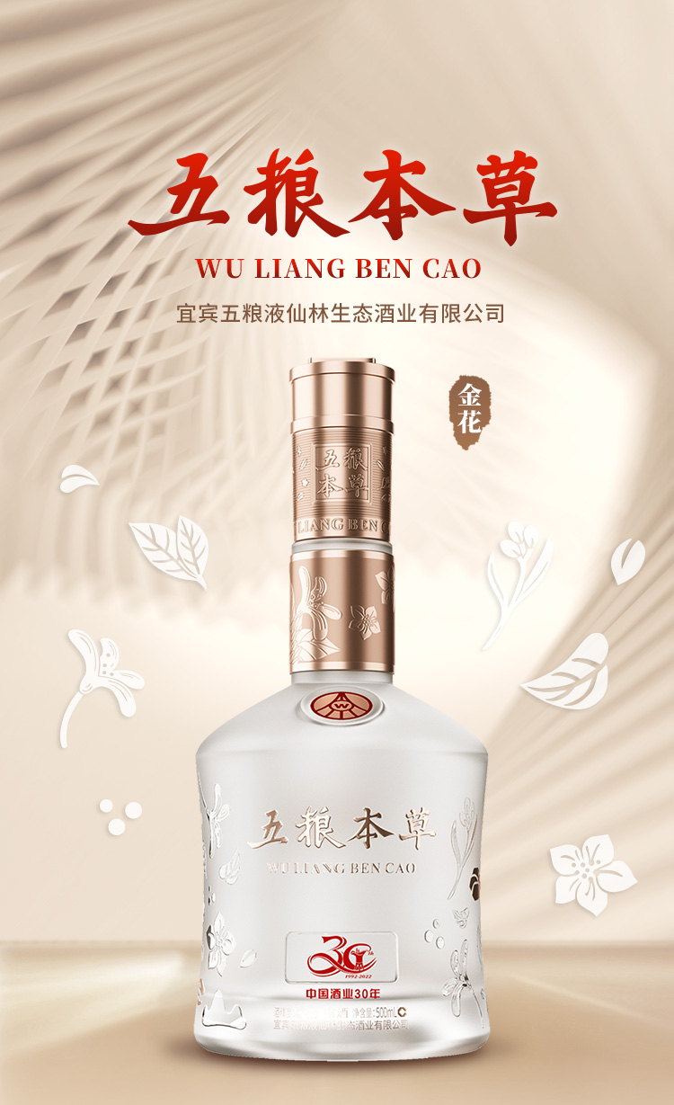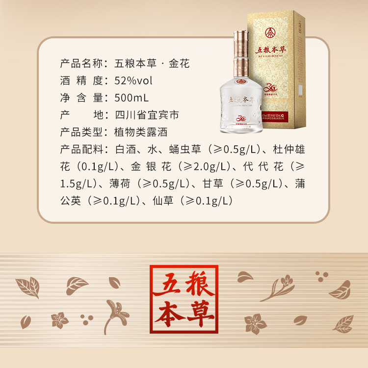 五粮液52五粮本草金花 500ml*1瓶 金色