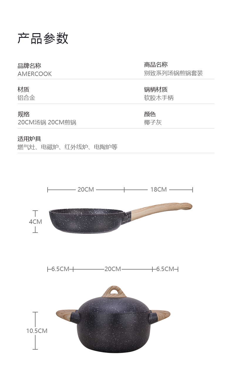 AMERCOOK阿米尔AC0112344.20WE大球锅套装Ø20*9.5cm(单位:套) 深灰色