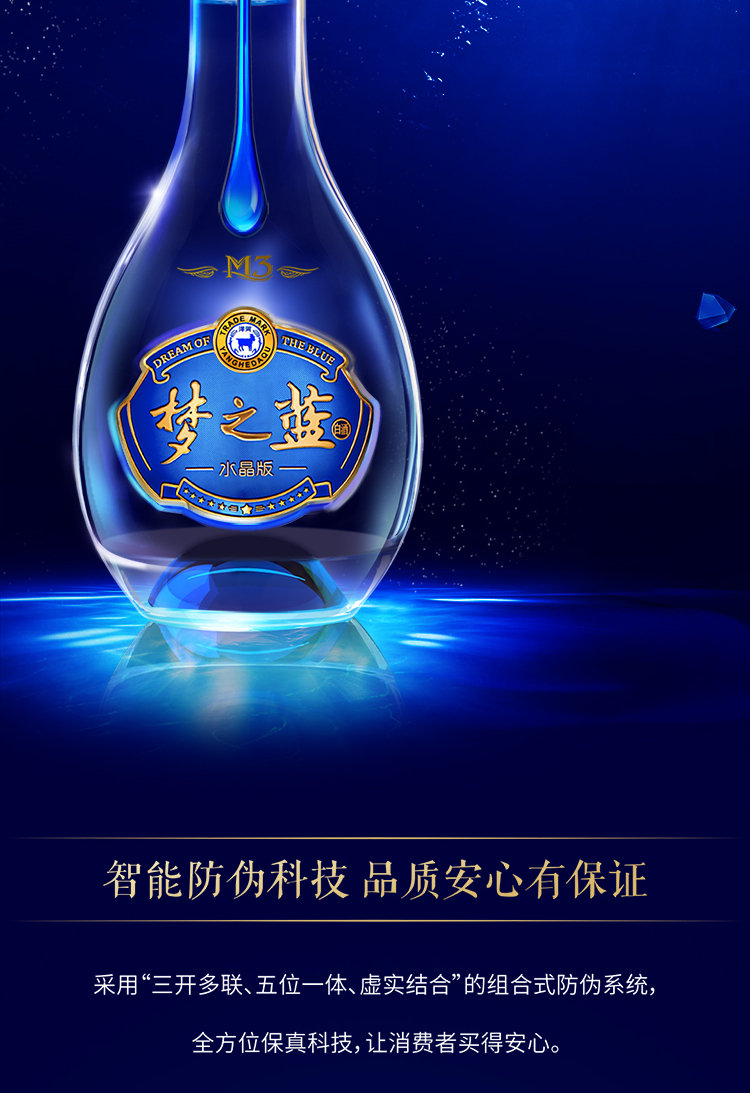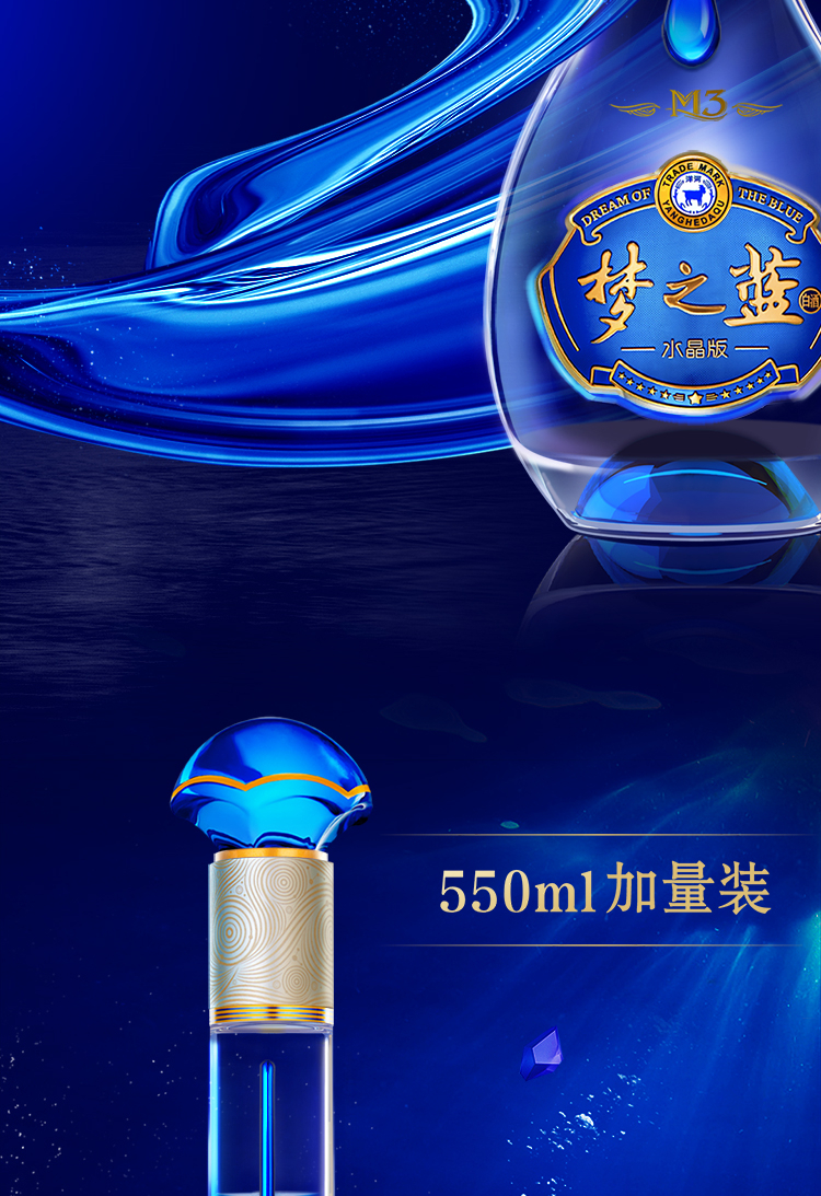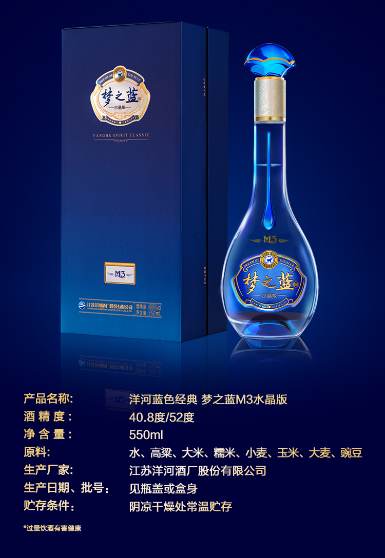 【洋河股份】蓝色经典52度 梦之蓝M3水晶版白酒 550ml *1瓶 蓝色