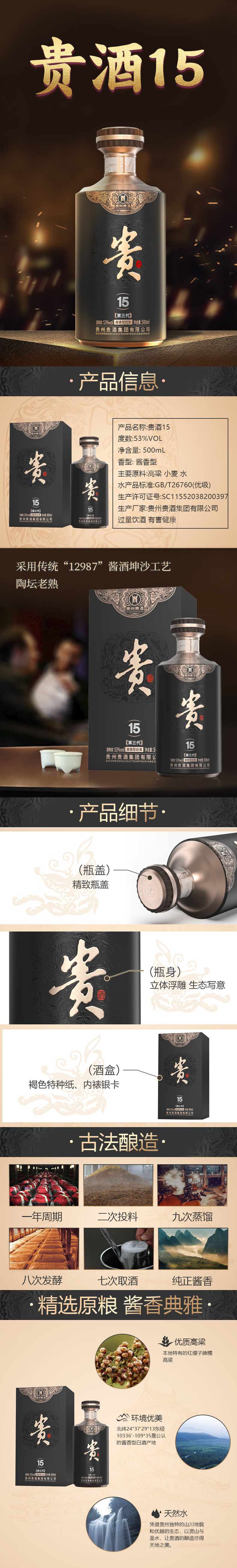 【洋河股份】第三代53度15年酱香型白酒500ml*1瓶 黑色