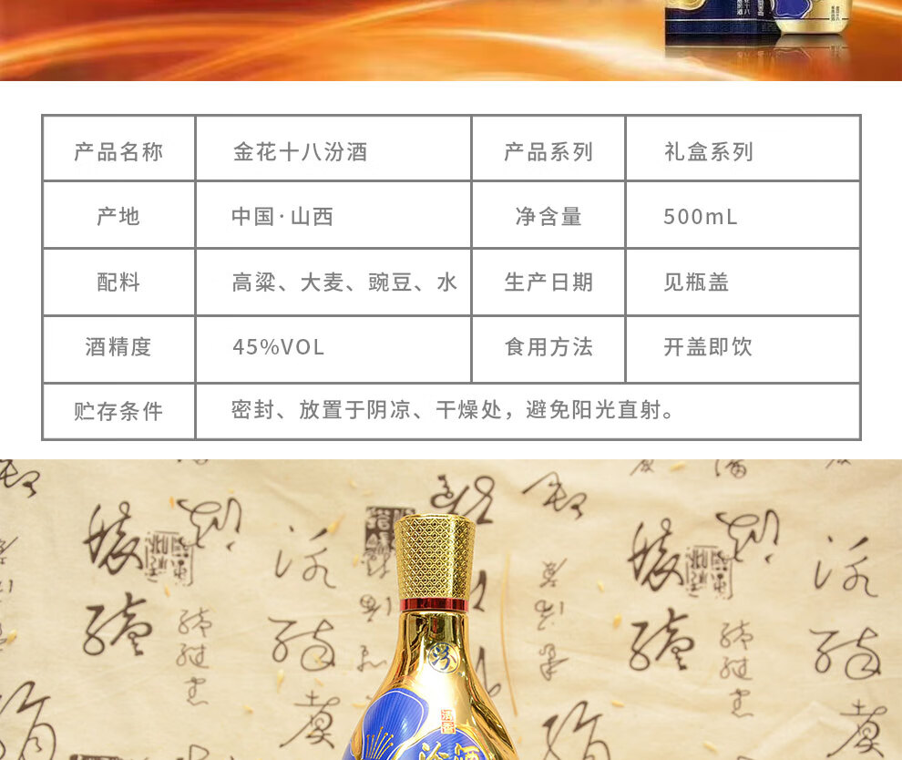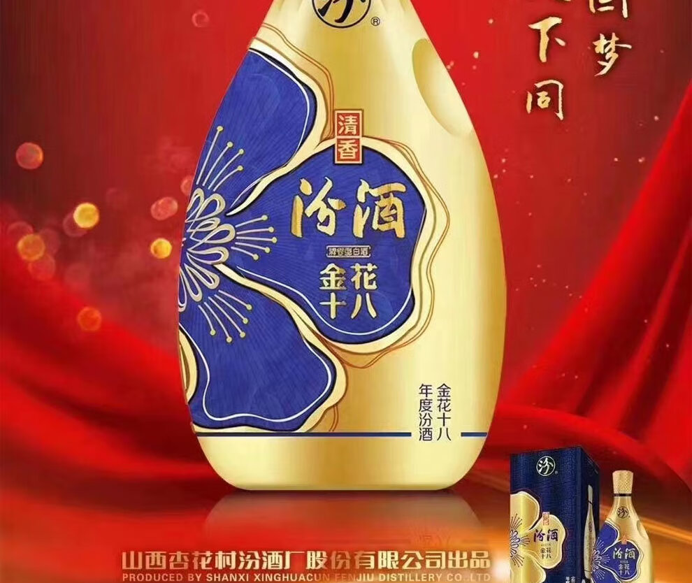 汾酒45度金花十八500ml*1瓶 金色