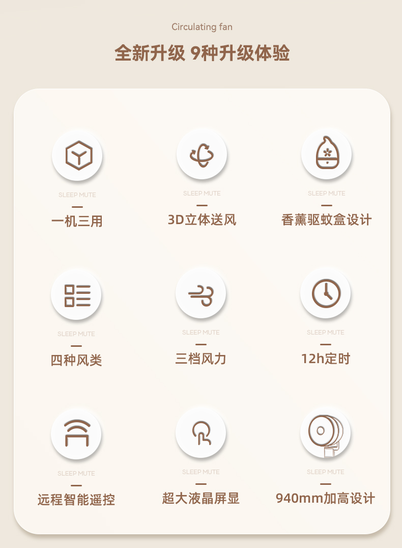 西佑SIUU八字摇头驱蚊遥控循环扇SF2302Y(型号)奶咖 奶咖色