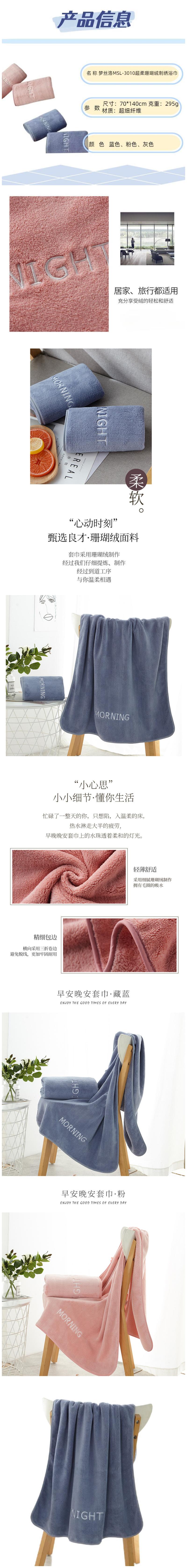 梦丝洛MSL-3010超柔珊瑚绒刺绣浴巾(单位:条) 混色