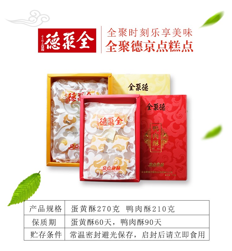 全聚德(京点蛋黄酥270g+京点鸭肉酥210g)*2套 无色