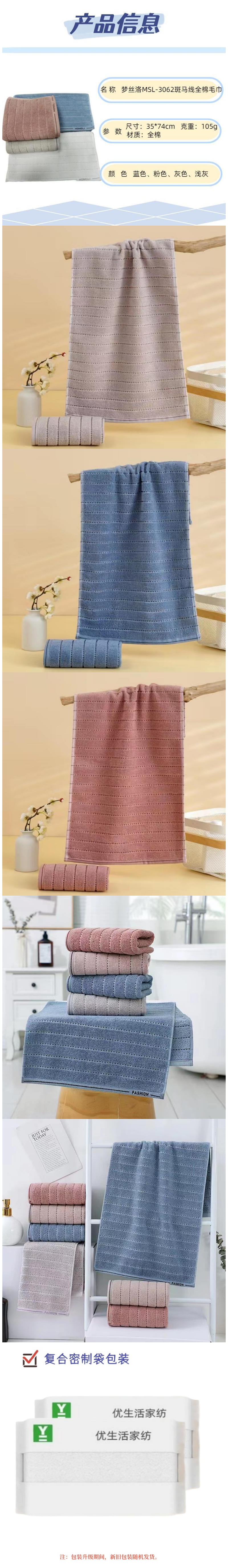 梦丝洛MSL-3062斑马线全棉毛巾(单位:条) 混色