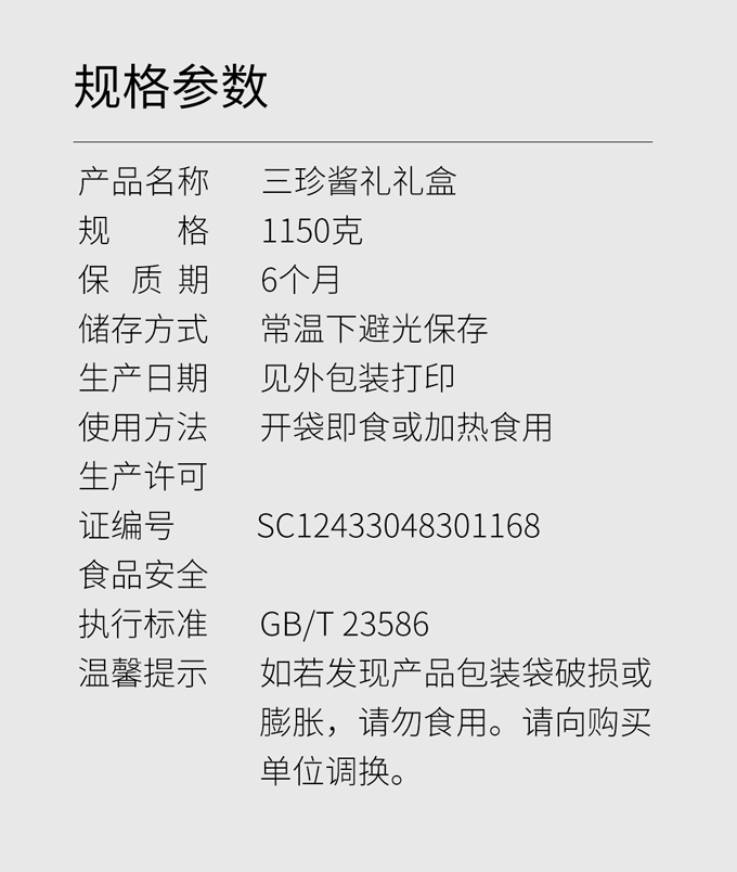 【三珍斋】三珍酱礼188型1150g(单位:盒) 红色