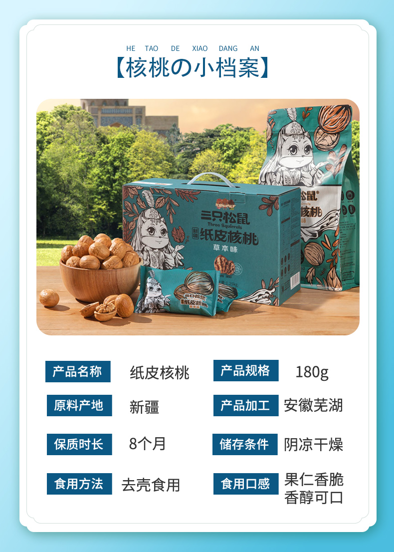 【三只松鼠】大头装_纸皮核桃/草本味/180g(单位:袋) 绿色