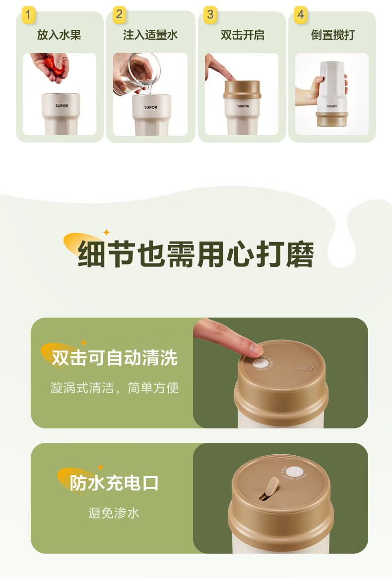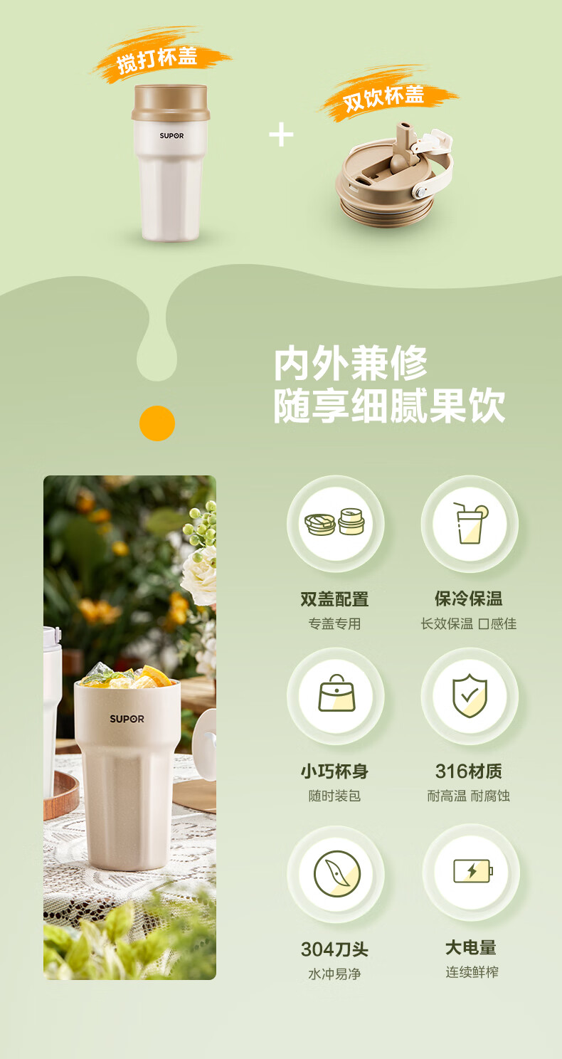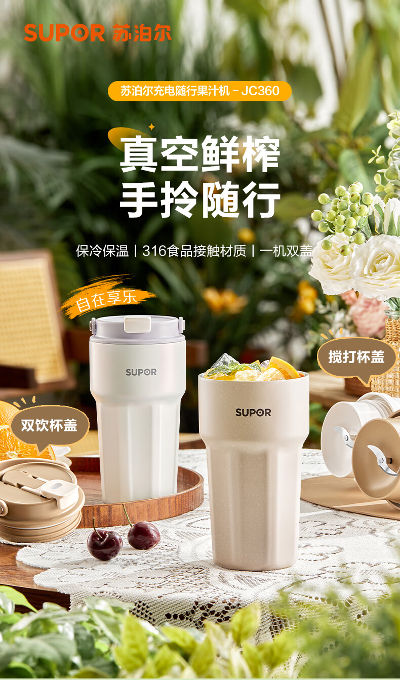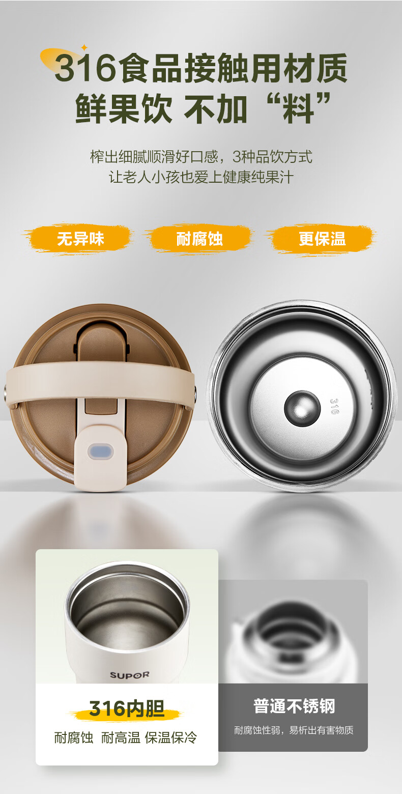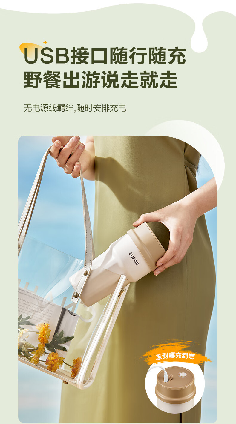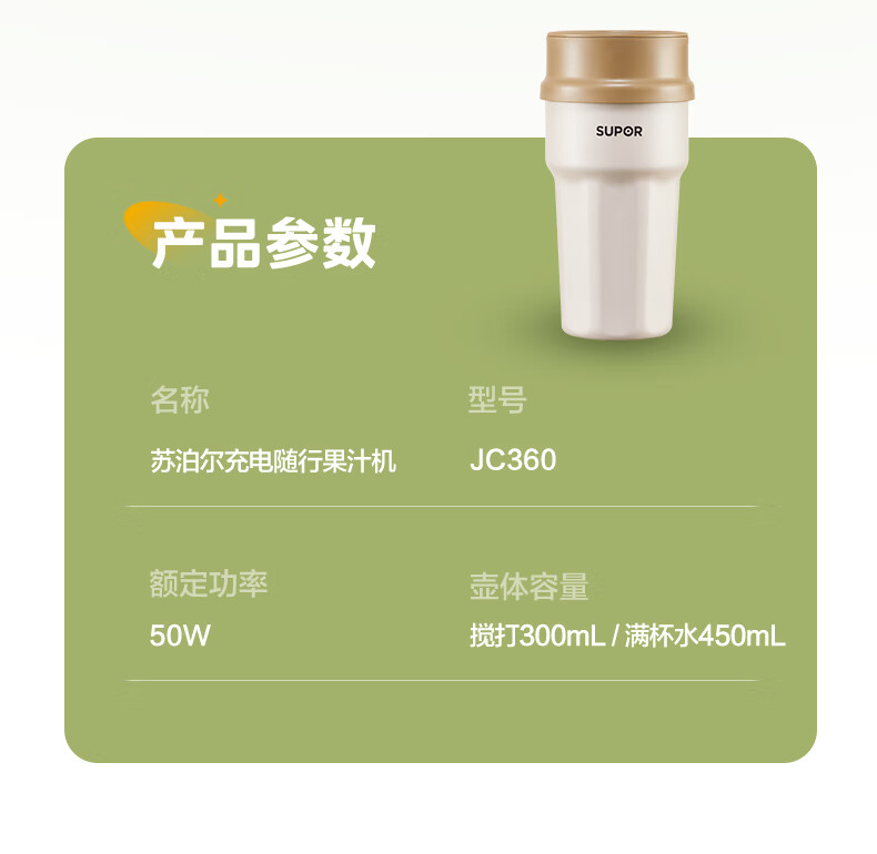 苏泊尔(SUPOR) 便携榨汁机 JC360 300ML 咖啡色(单位:个)