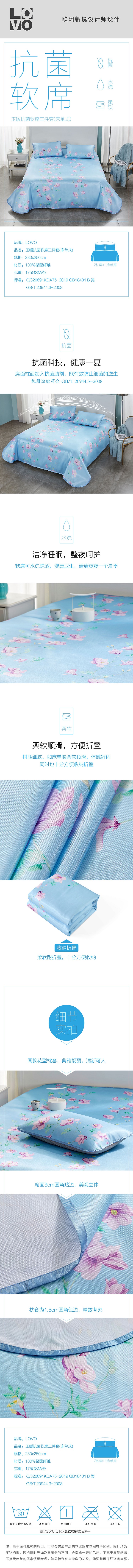 罗莱生活荣誉出品LOVO 玉暖抗菌软席三件套(床单式)230*250cm 深蓝色 蓝色