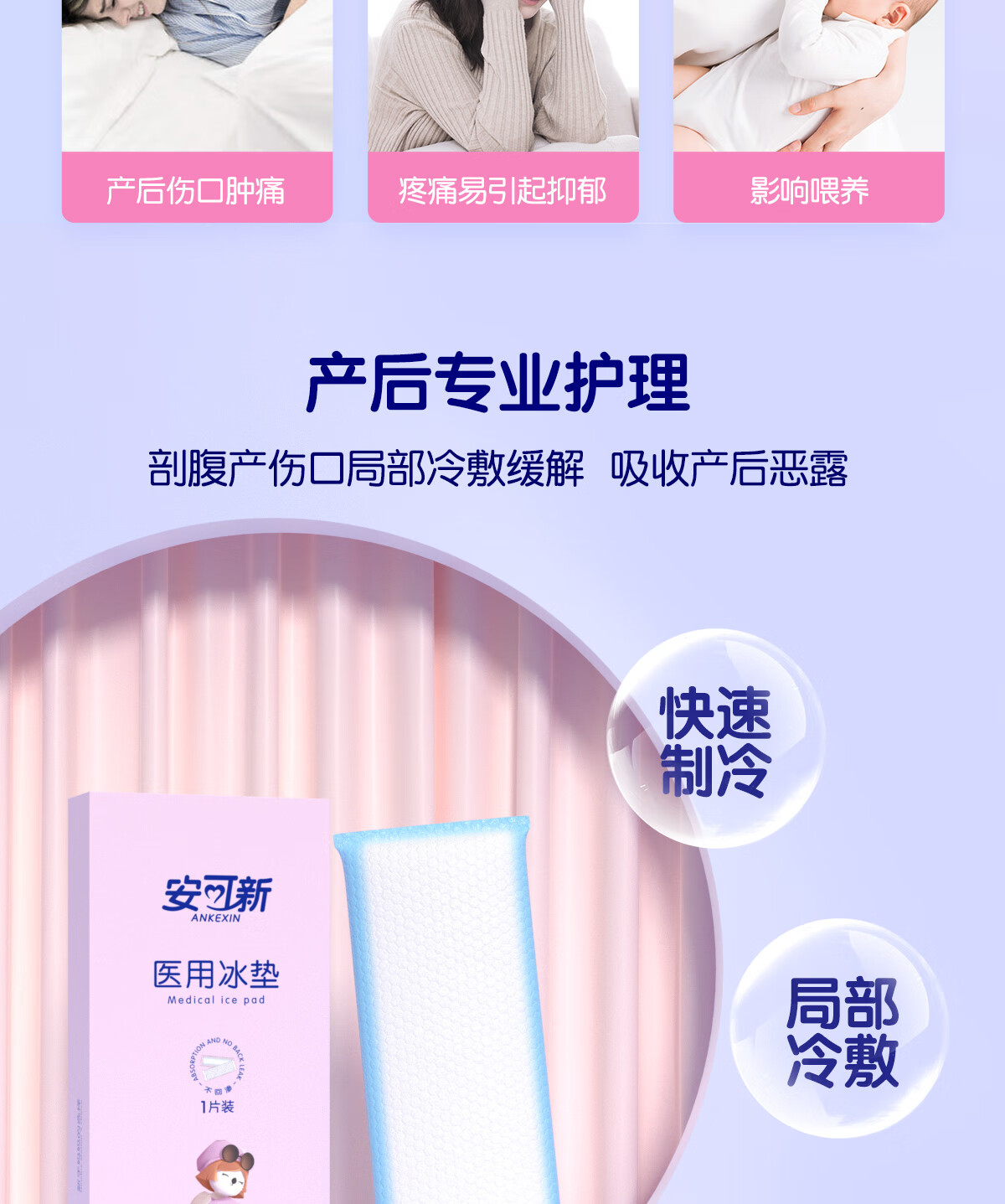 安可新孕产妇会阴冷敷垫顺剖两用产后敷贴一次性冰垫袋(单位:盒) 混色
