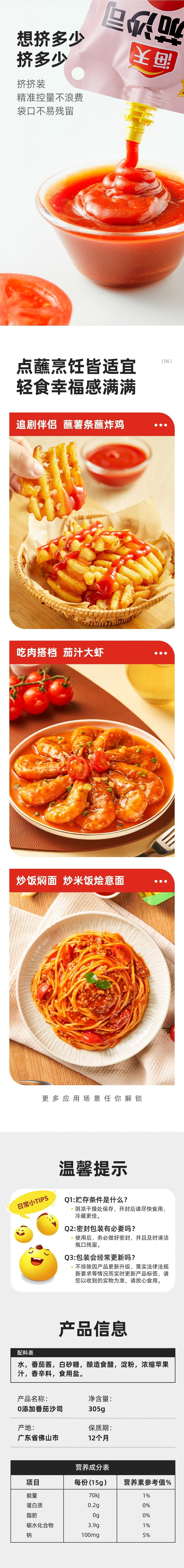 海天0添加番茄沙司305g*2袋(中华老字号) 305g*2袋
