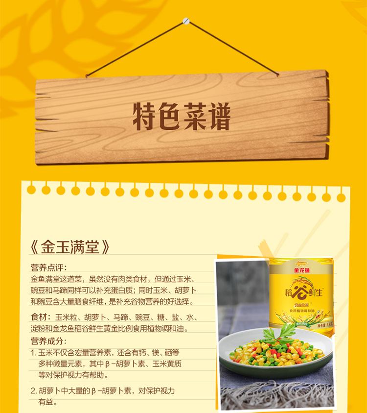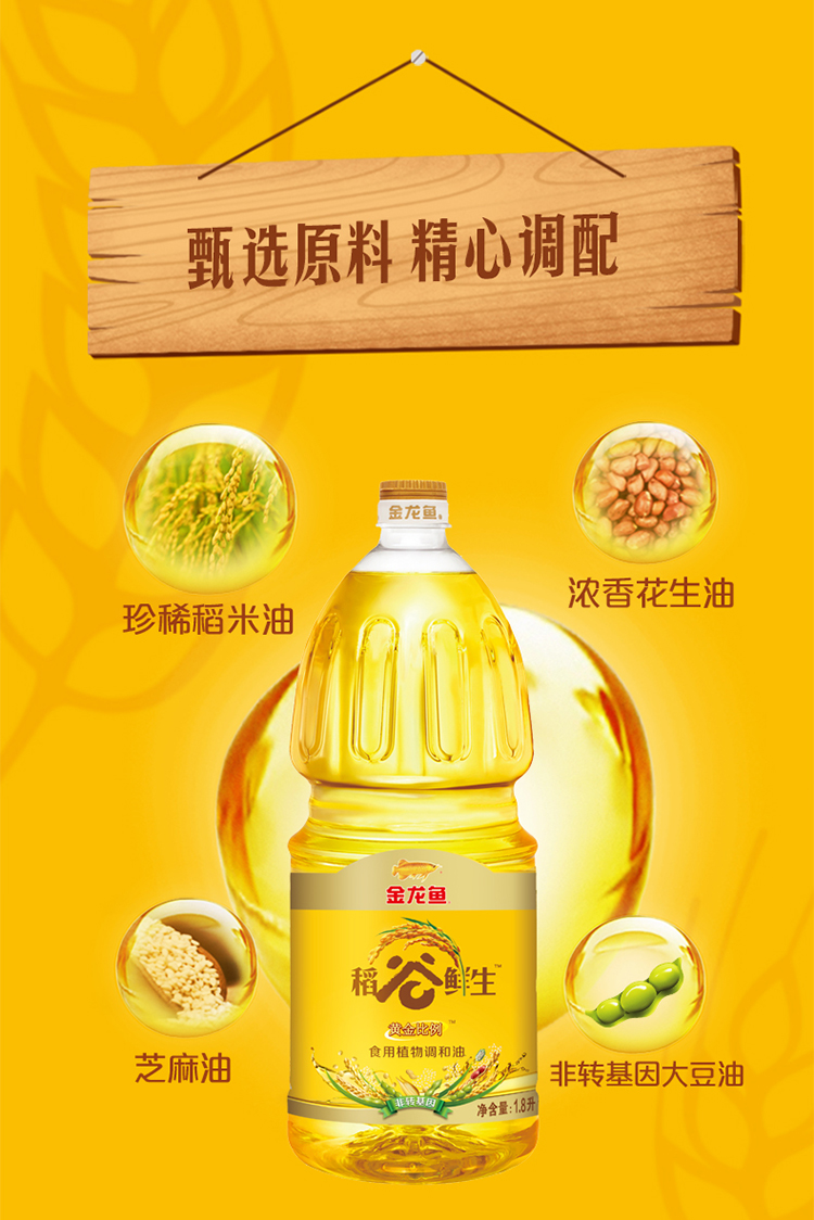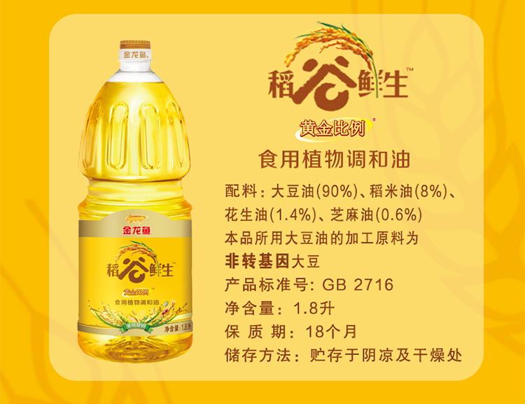 金龙鱼黄金比例稻谷鲜生食用植物调和油1.8L(单位:瓶) 黄色