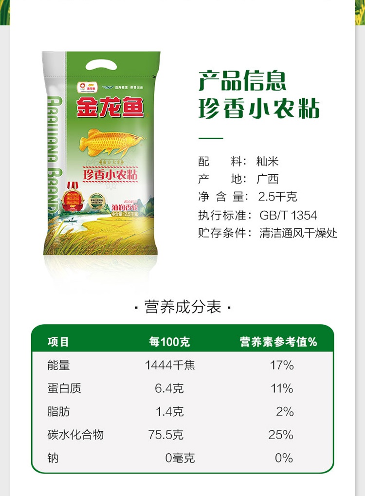 金龙鱼珍香小农粘2.5KG*2袋 绿色