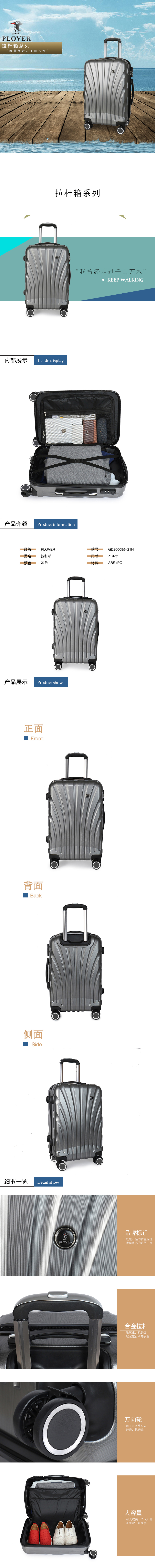 PLOVER香港啄木鸟万向轮21寸拉杆箱GD200095-21H(单位:个) 银色 20寸