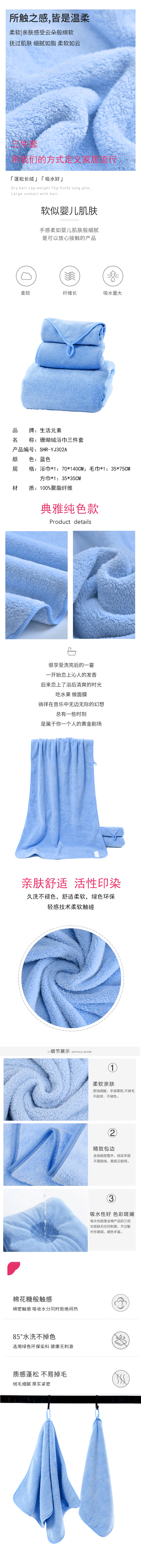 生活元素浴巾毛巾干发巾套装SHR-YJ302A(单位:套) 天蓝色