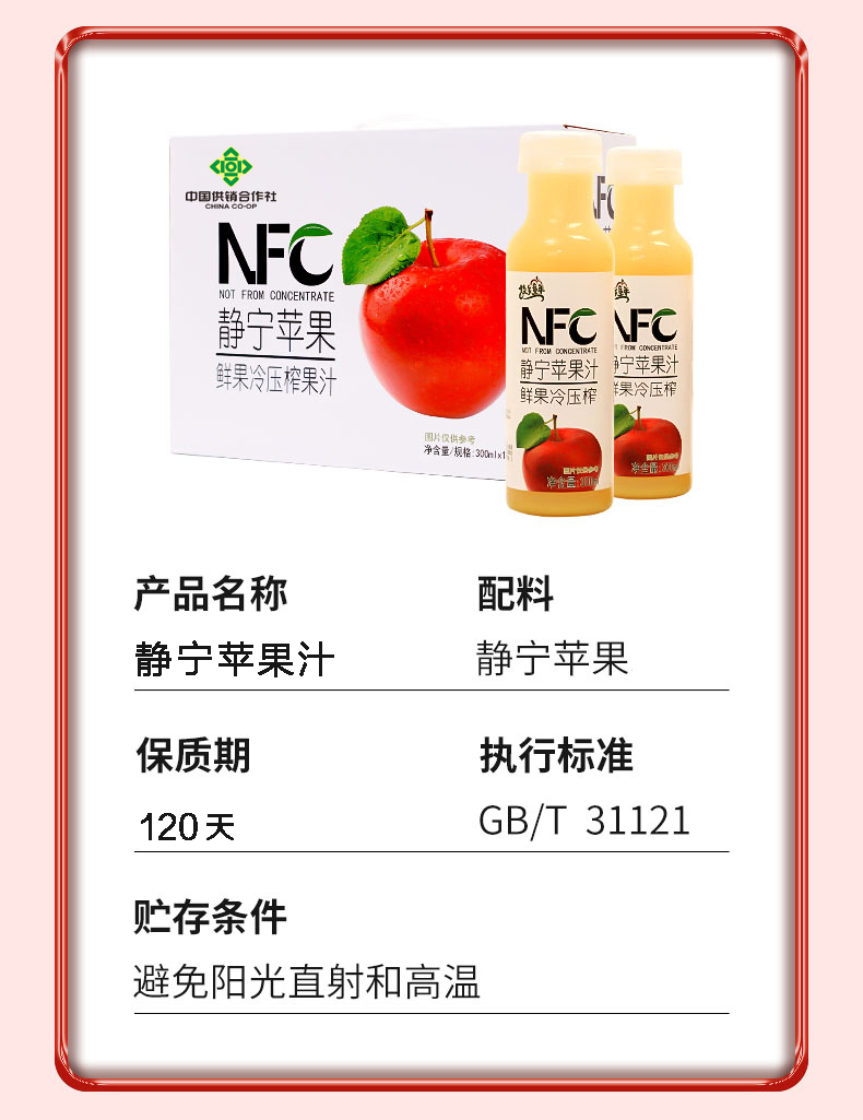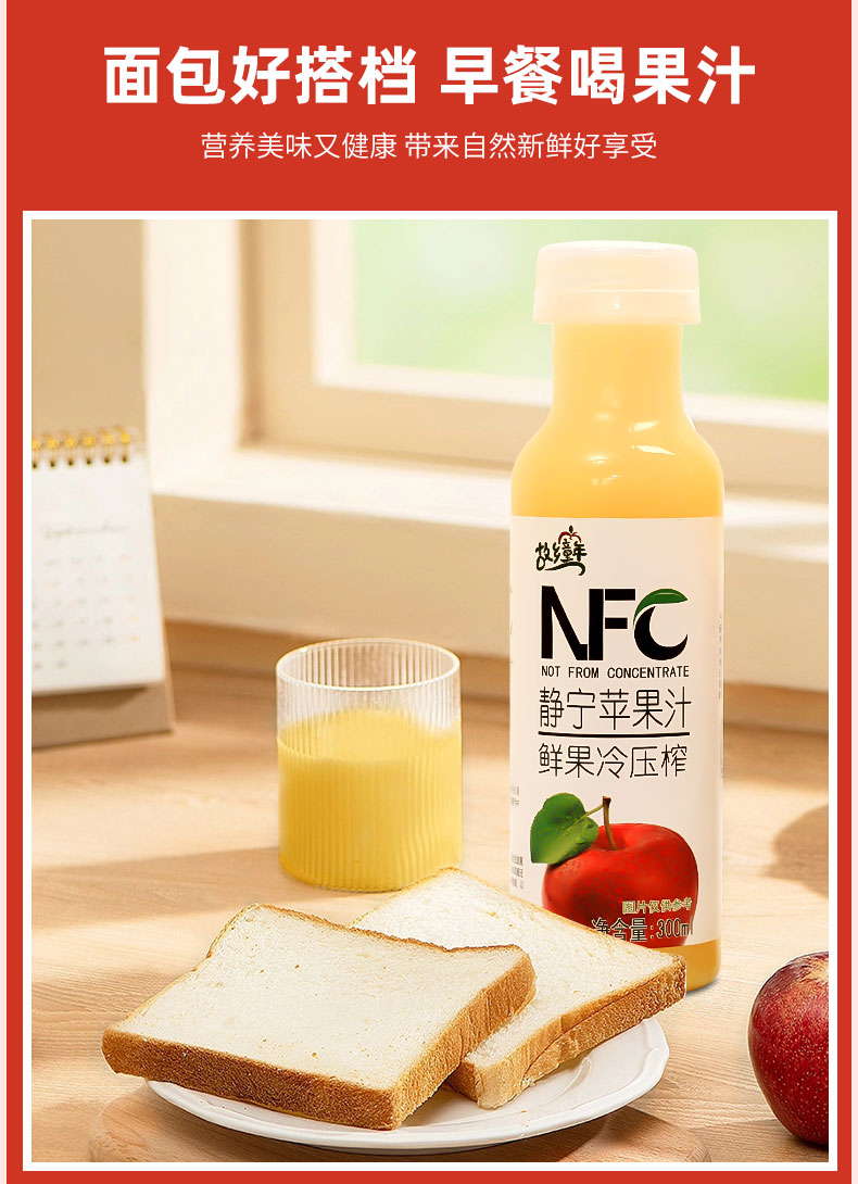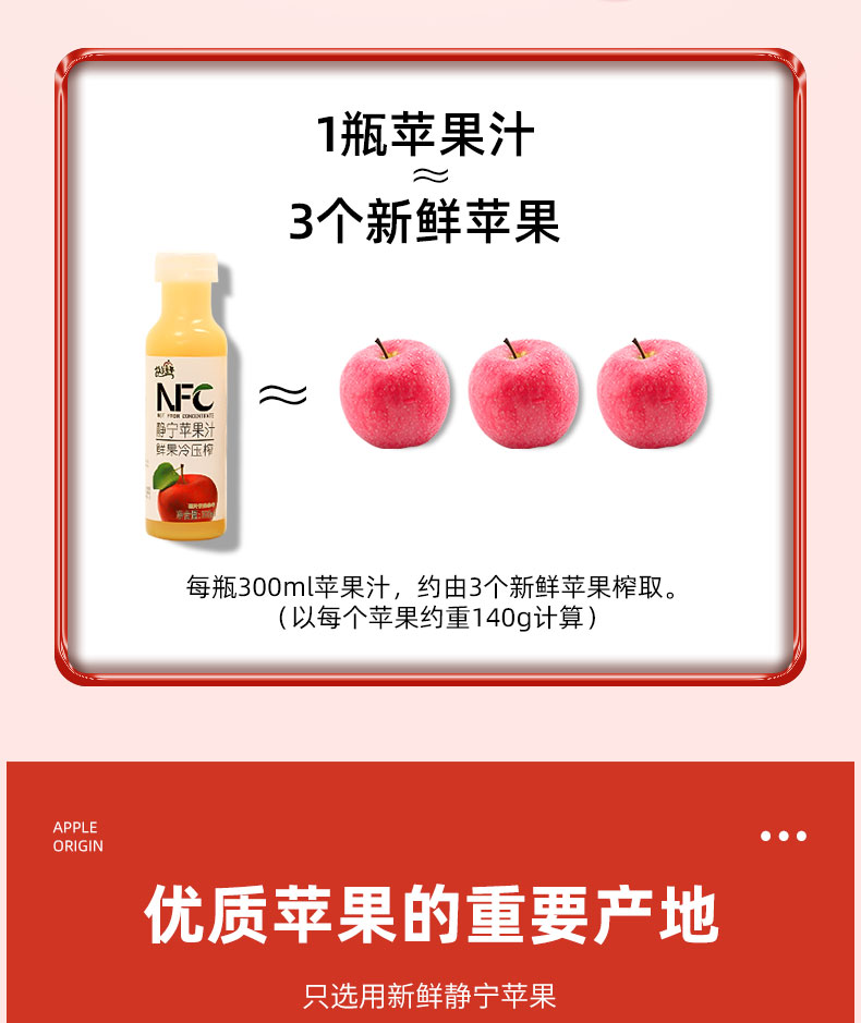 故乡童年 NFC鲜榨苹果汁300ml*10瓶(单位:箱) 拿铁色
