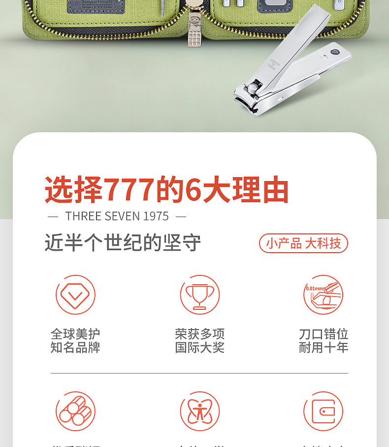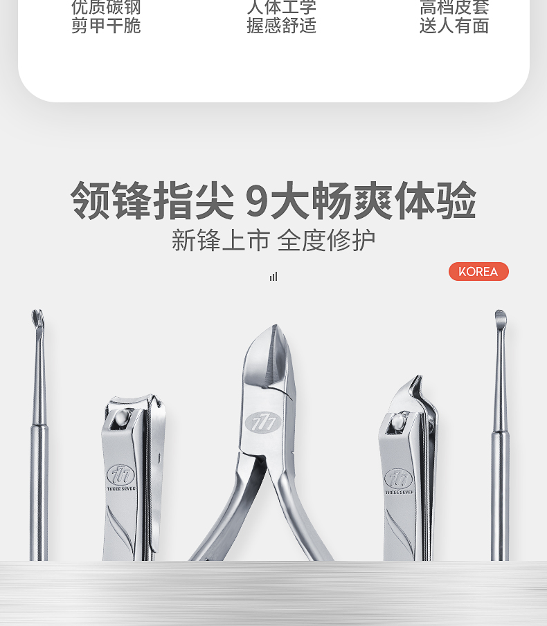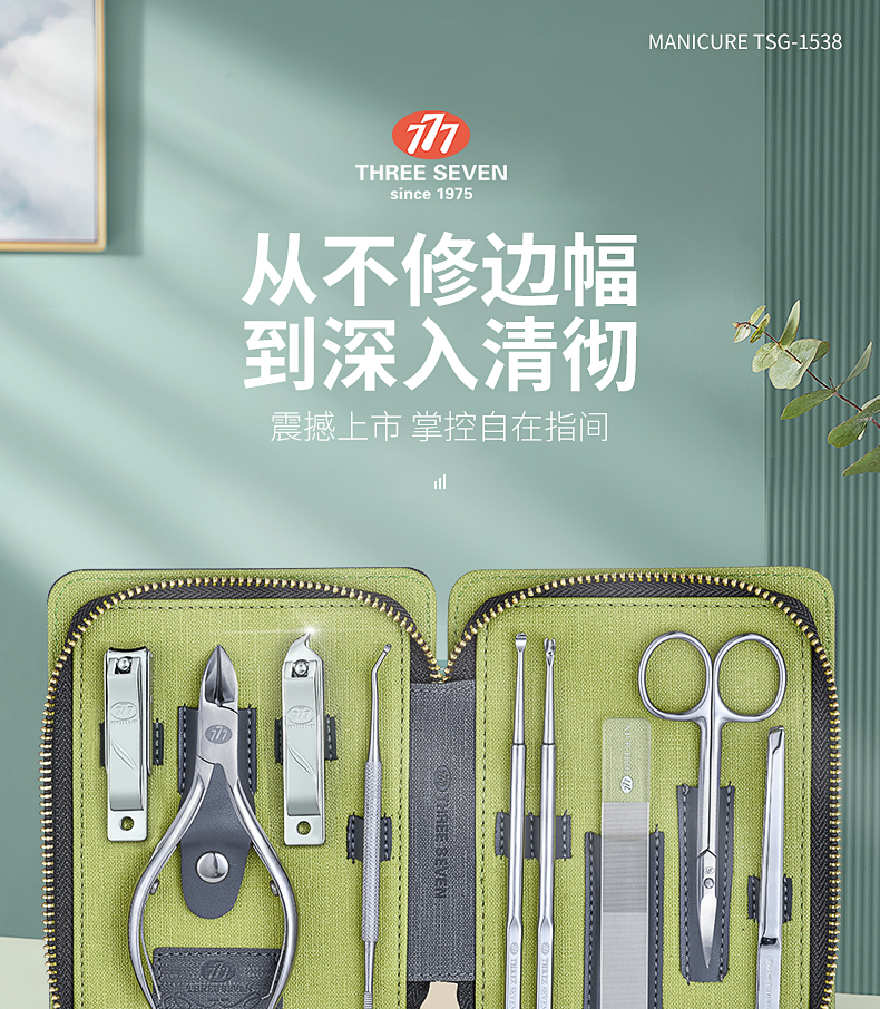 THREE SEVEN/777 指甲刀套装 9件套 TSG-1538(单位:套) 灰色