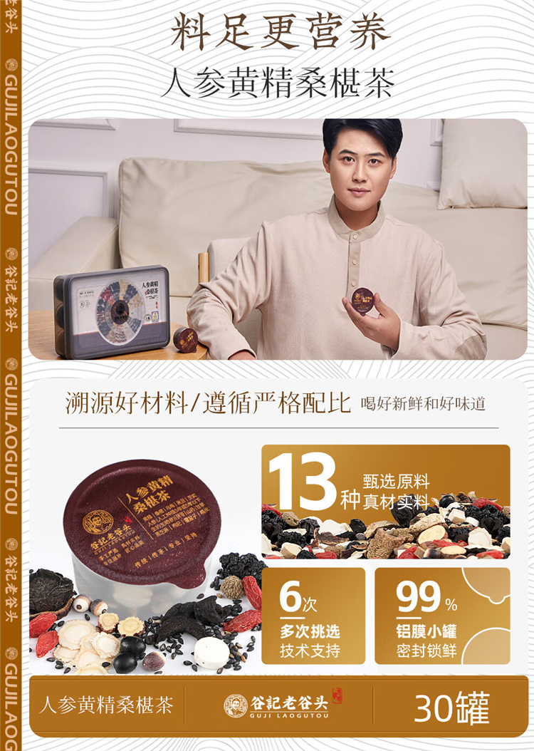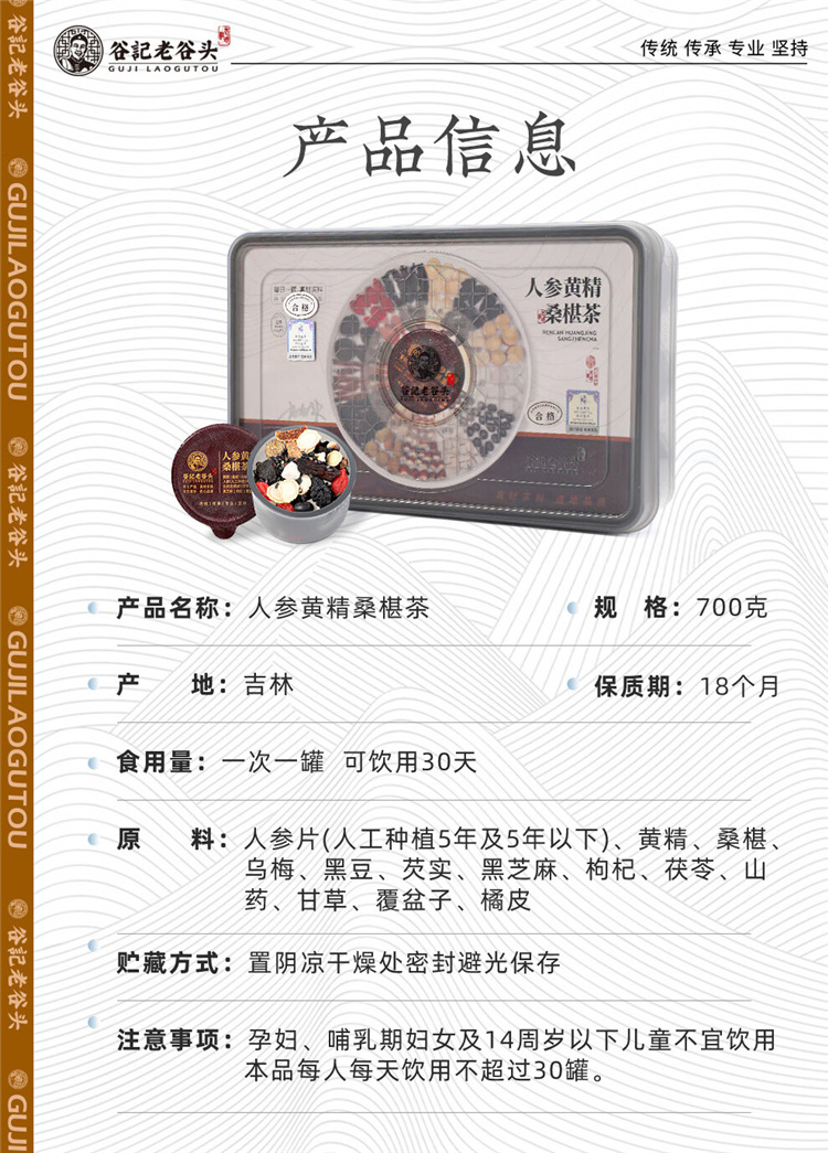 谷记老谷头 人参黄精桑葚茶700g(内含30罐)盒