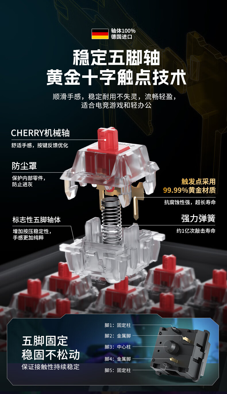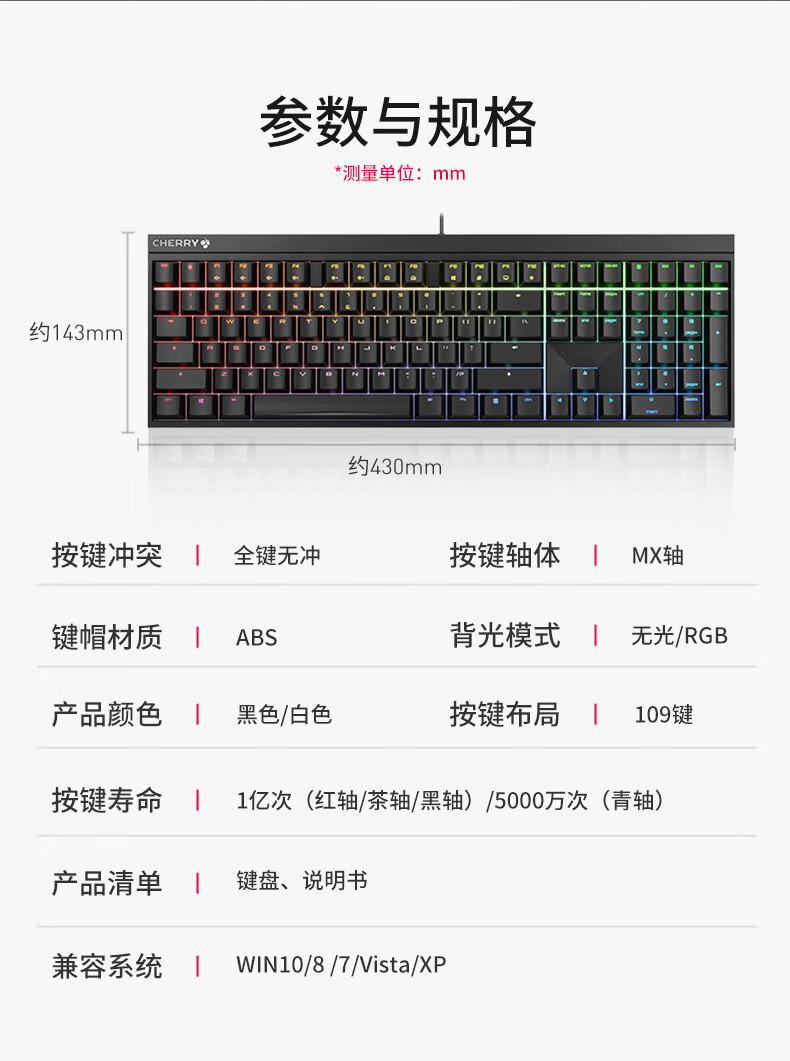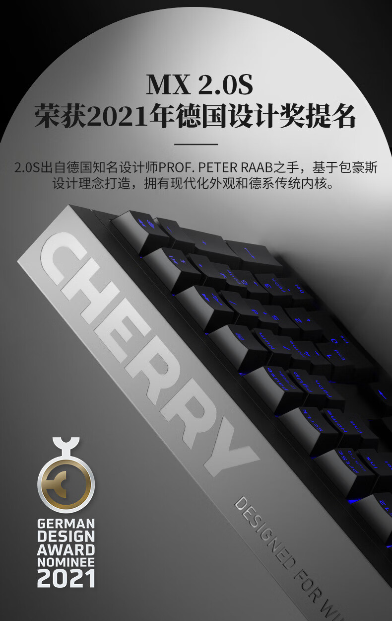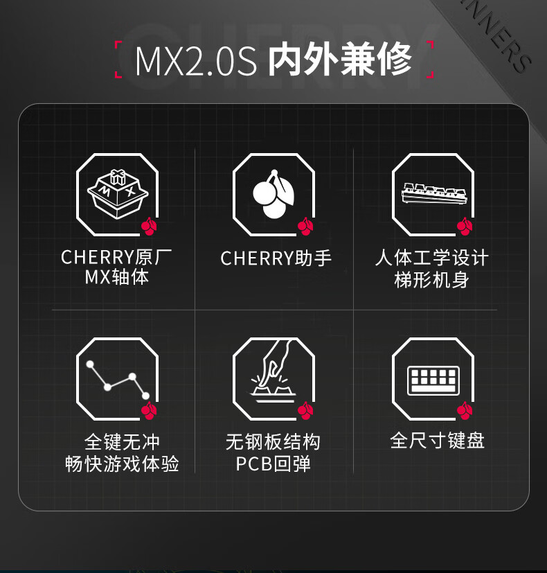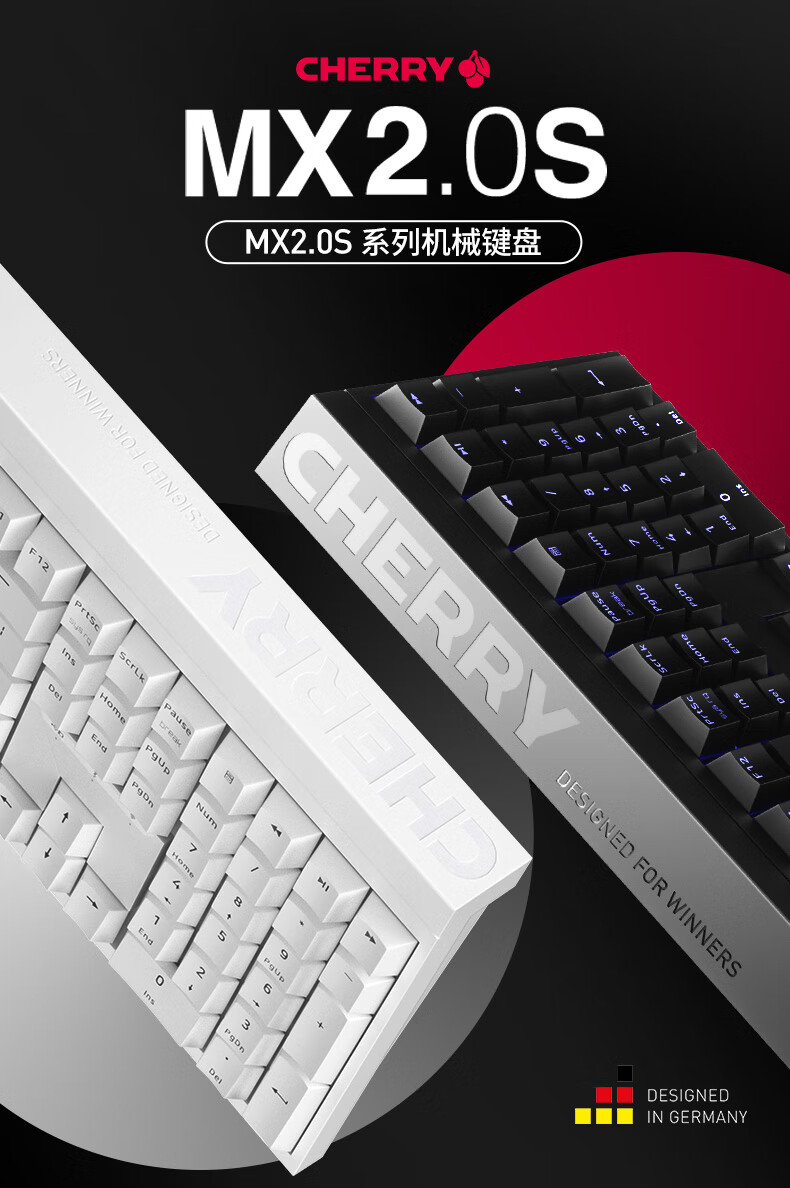 CHERRY樱桃 MX2.0S 机械键盘 游戏键盘 办公键盘 电脑键盘全尺寸键盘有线键盘 樱桃无/个 黑色红轴