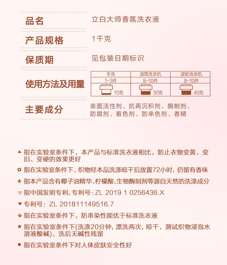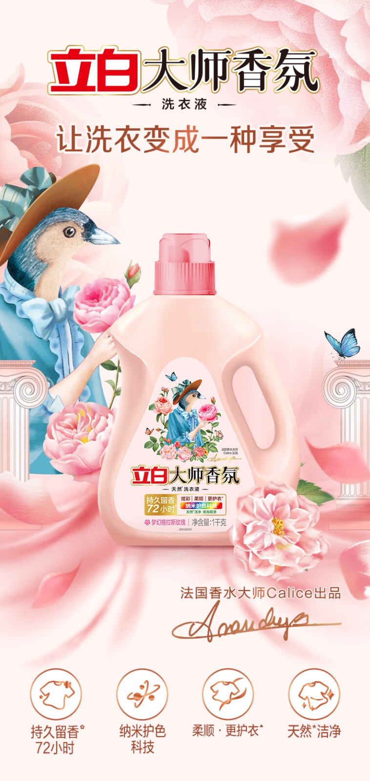 立白大师香氛香水洗衣液【4斤】大师香氛液1kg+500g*2袋(单位:瓶)