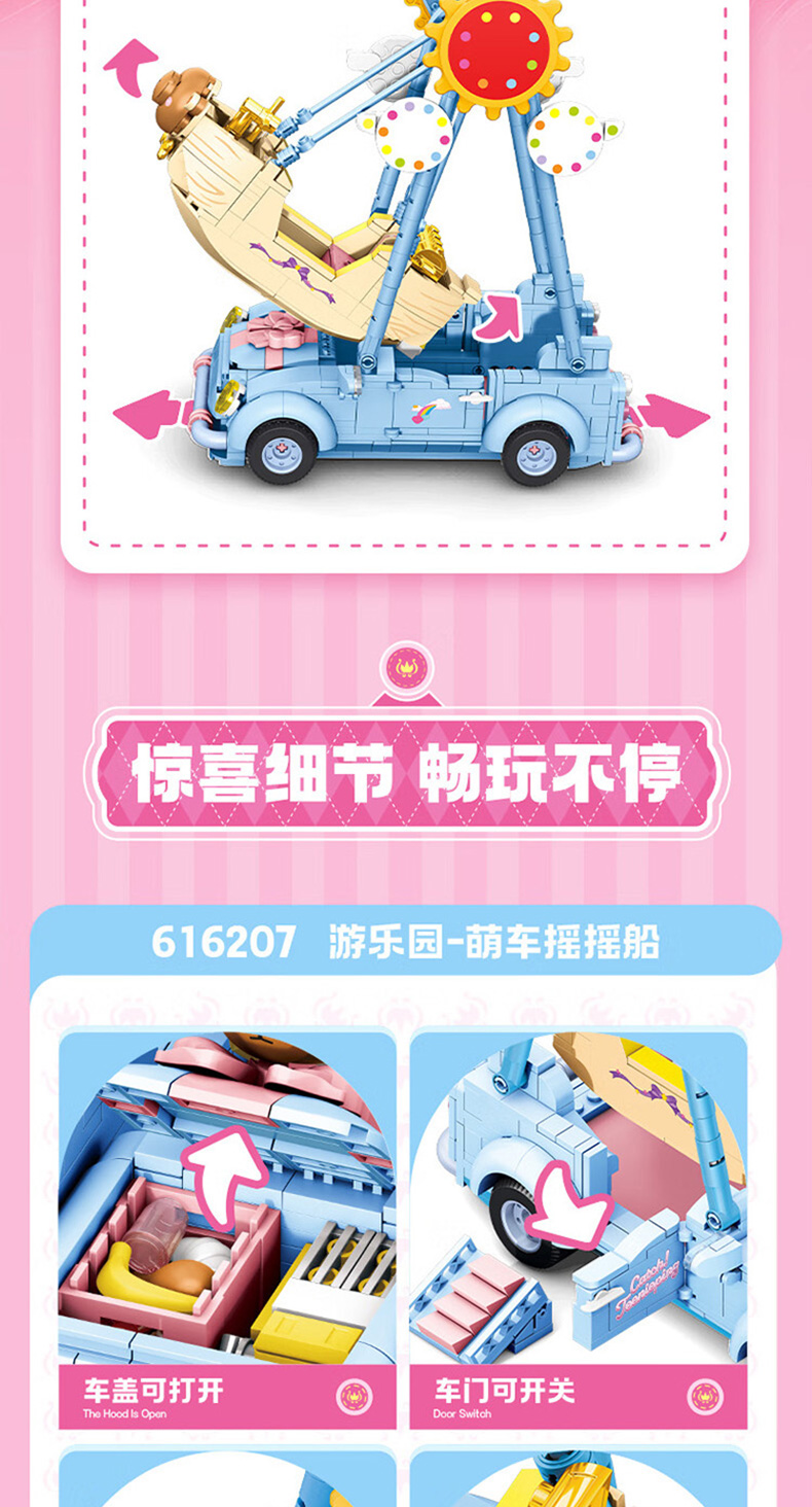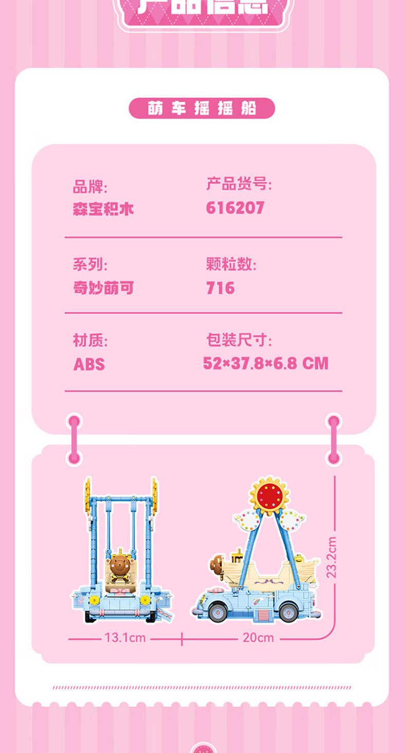 森宝积木游乐园:萌车摇摇船616207(单位:盒) 萌车摇摇船