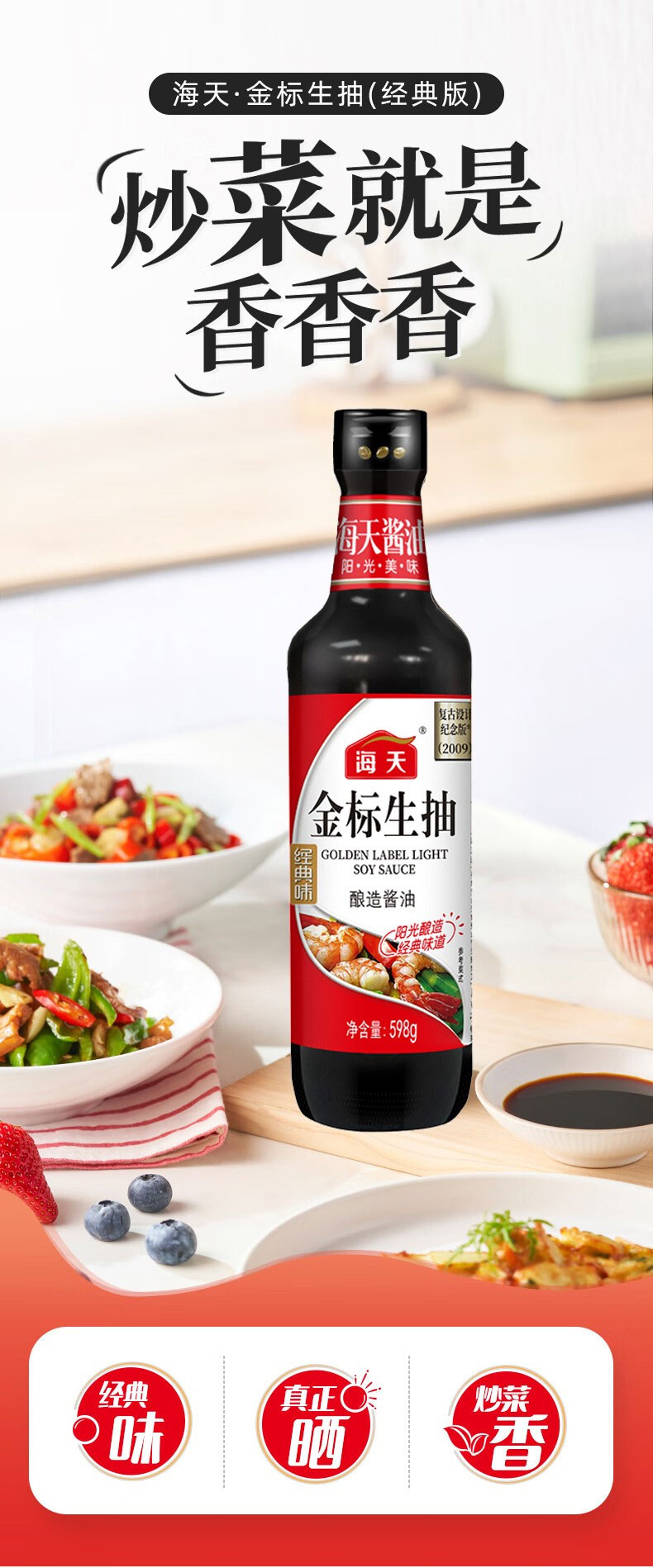 海天金标生抽酱油598g*3瓶(中华老字号) 598g*3瓶