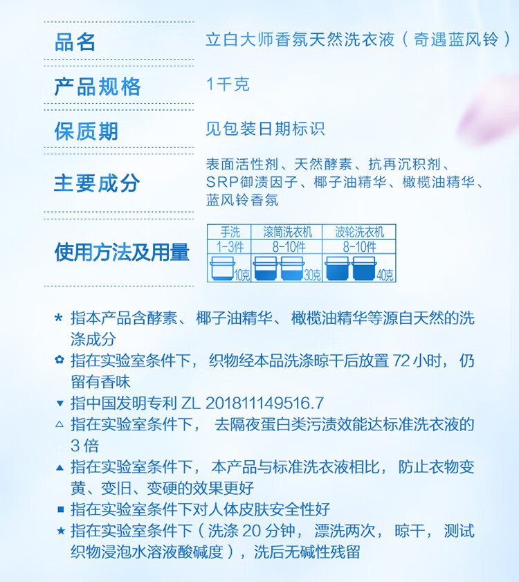 立白大师香氛洗衣液蓝风铃2kg*1瓶+100g*4袋LB20230428YJDF0150(单位:瓶)