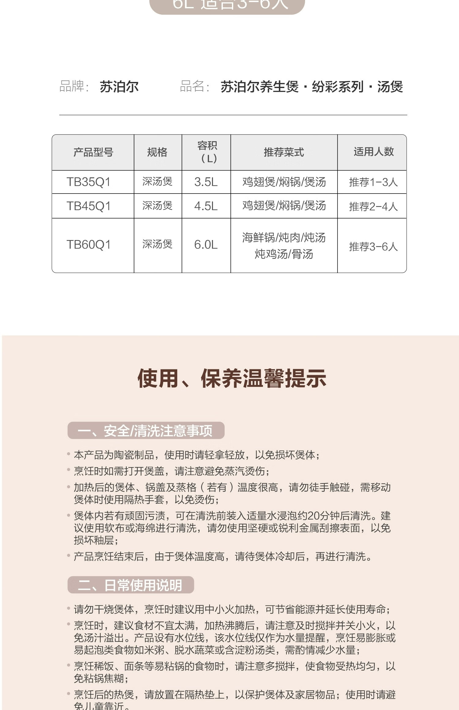 苏泊尔(SUPOR)3.5L砂锅煲.新陶养生煲.臻彩系列/TB35Q1(个) 拿铁色