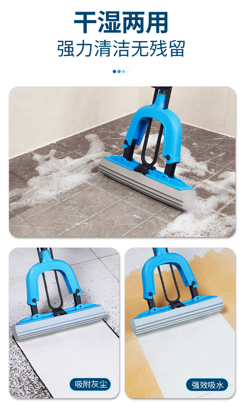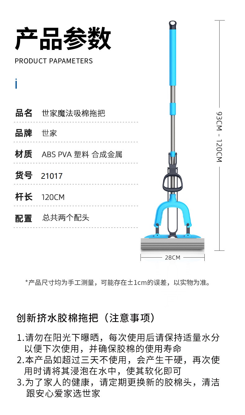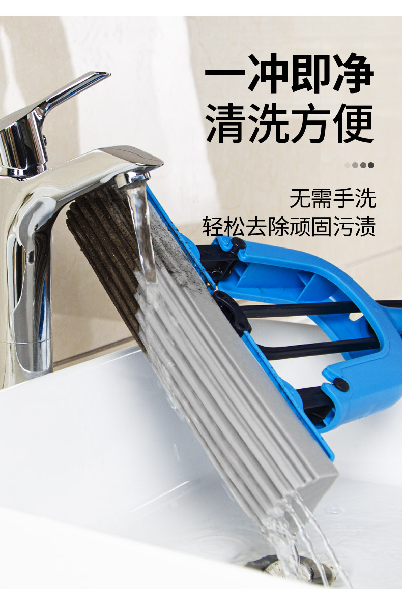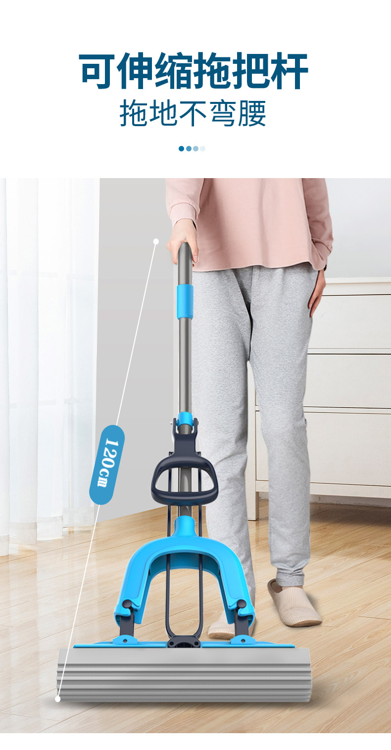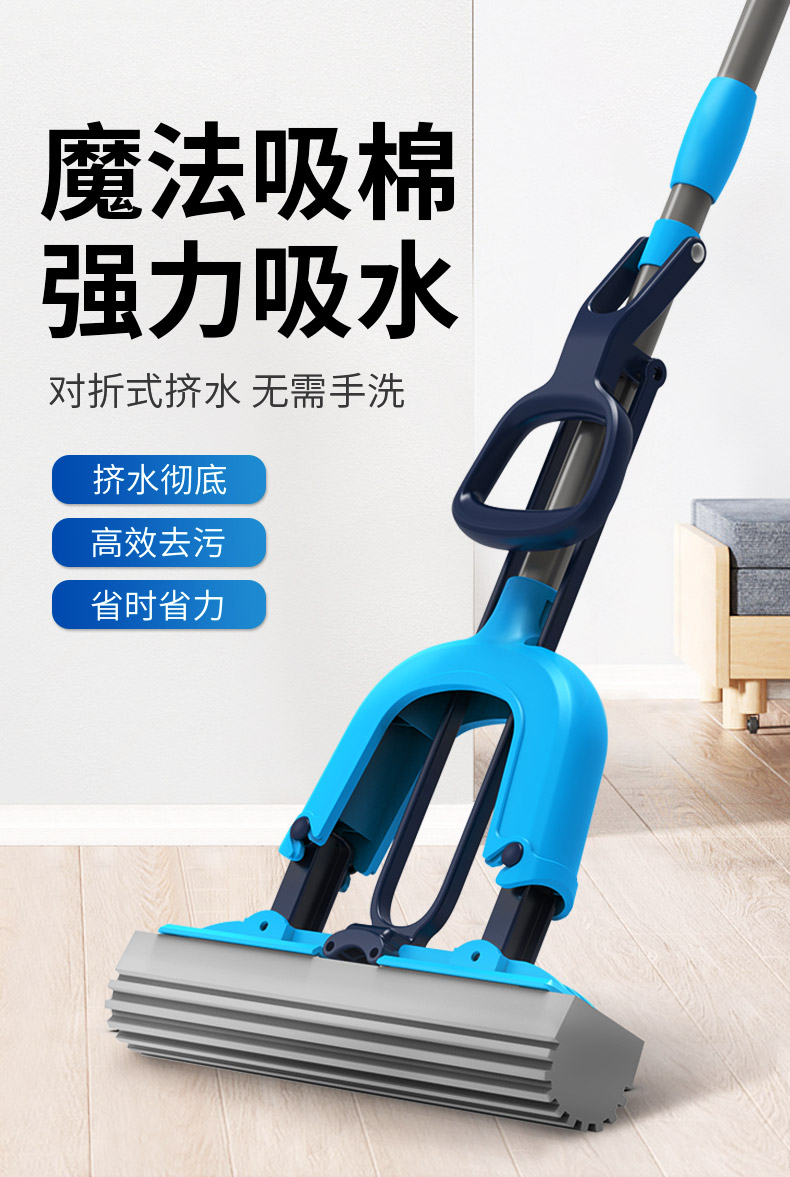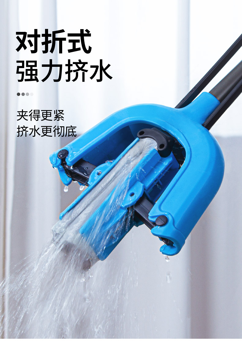 世家 21017胶棉拖把28cm*(伸缩93-120cm)对折式挤水 魔法吸棉拖把(单位:把) 深蓝色