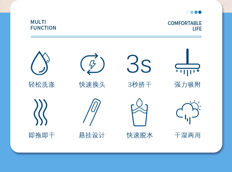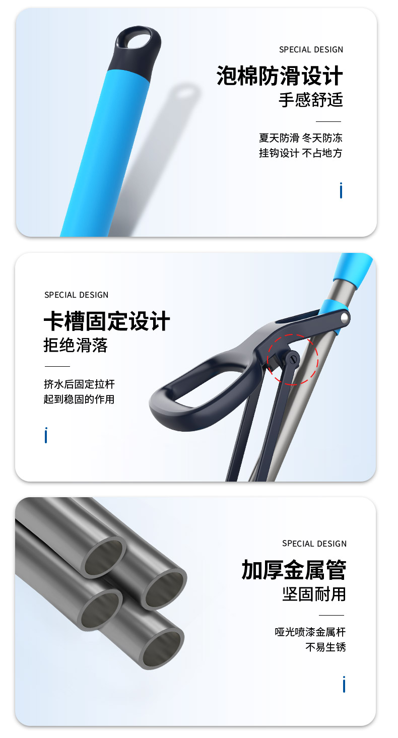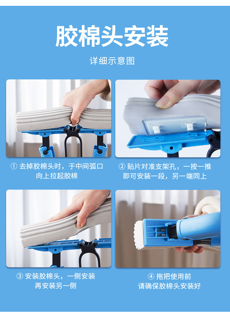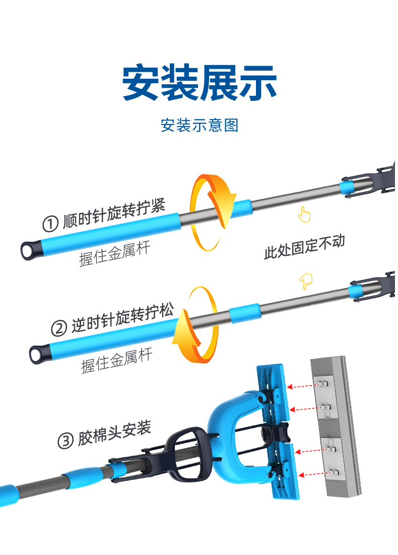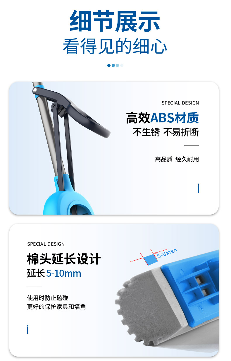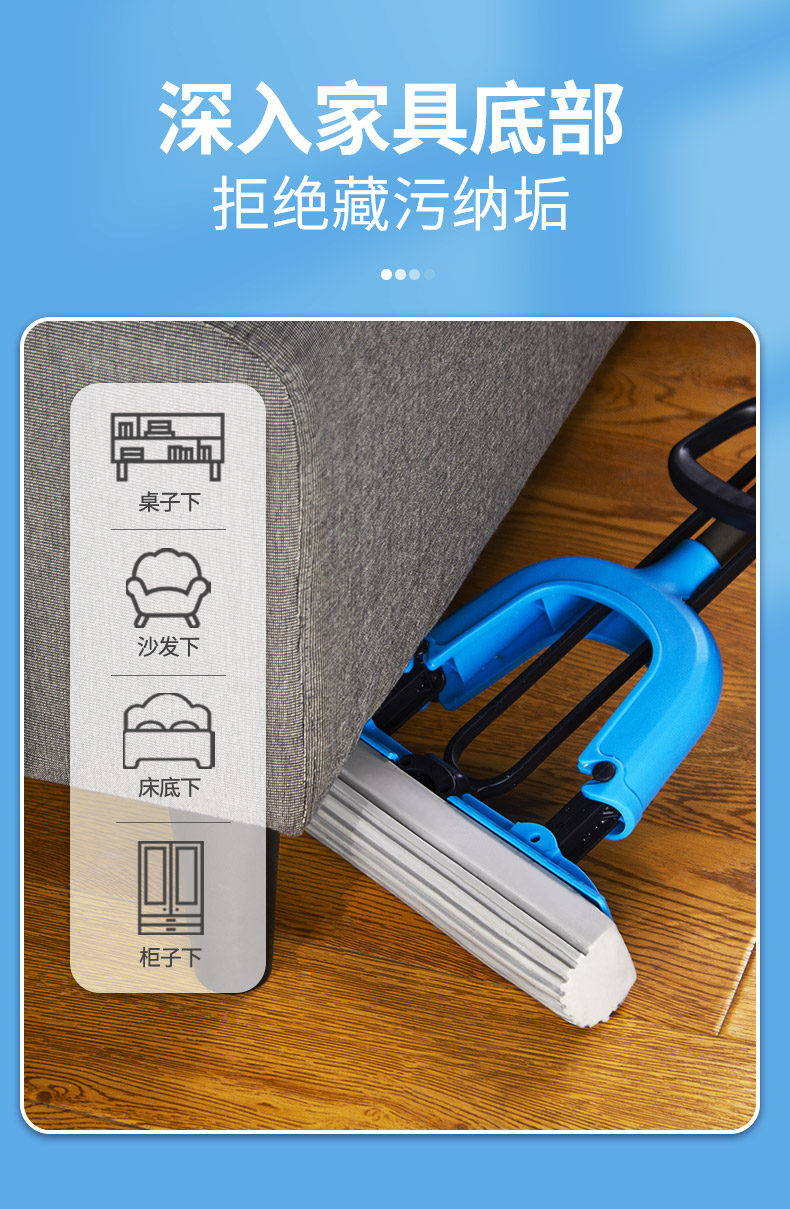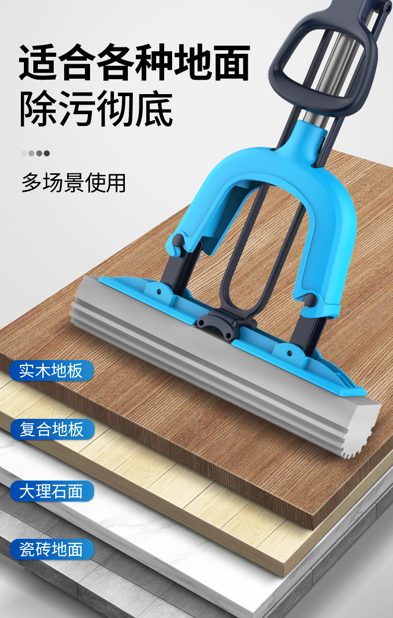 世家 21017胶棉拖把28cm*(伸缩93-120cm)对折式挤水 魔法吸棉拖把(单位:把) 深蓝色