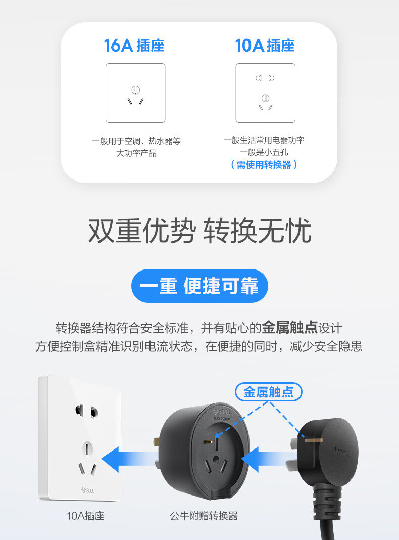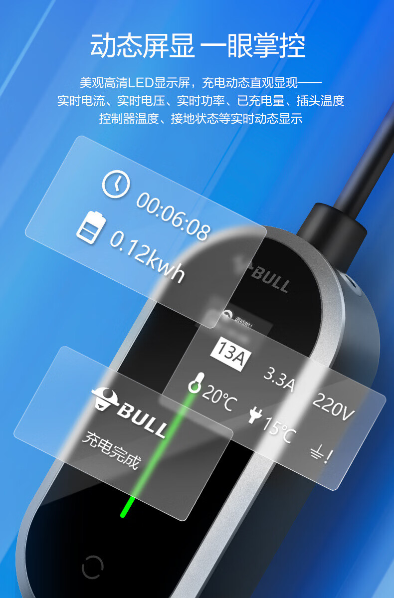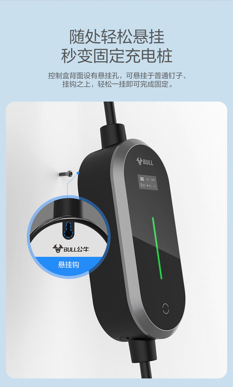公牛D2-A16B单盒装移动式交流充电枪(风尚款/9162)5m/个 曜石黑