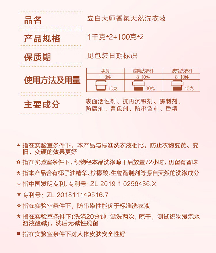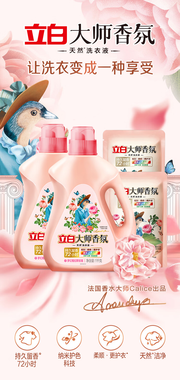 立白大师香氛液玫瑰洗衣液1kg*2瓶+100g*2袋LB20230428YJDF0179(单位:瓶)