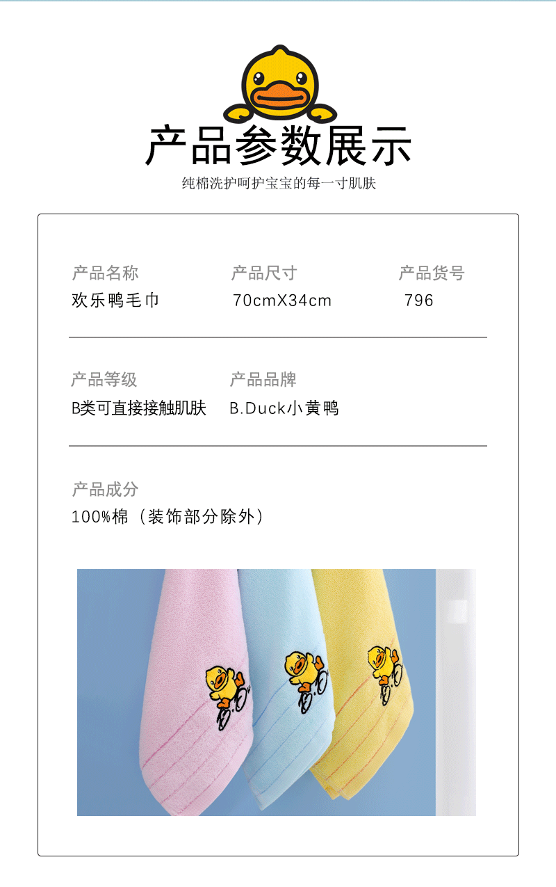 B.Duck欢乐鸭毛巾三条装796/70*34cm*3(单位:份) 混色